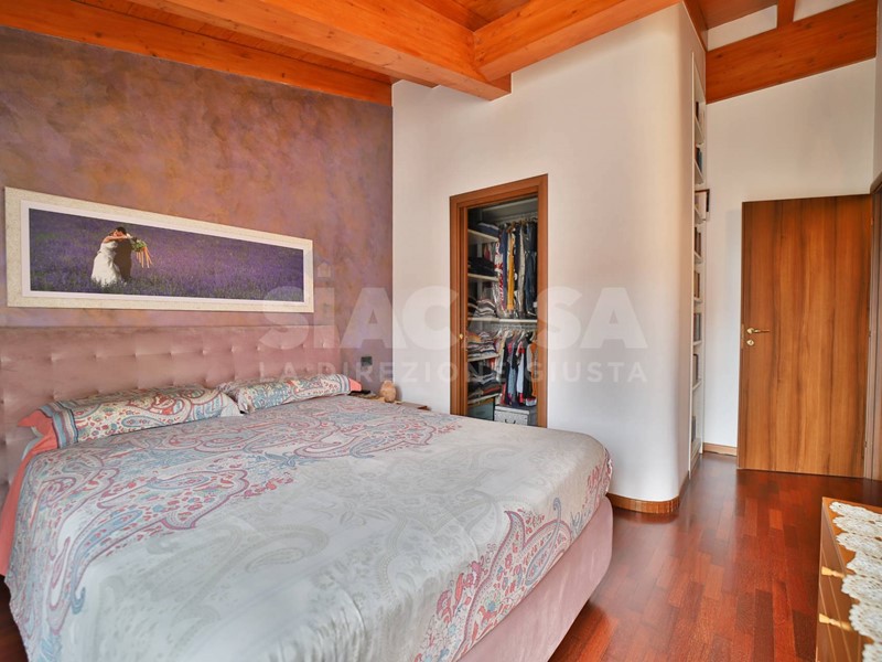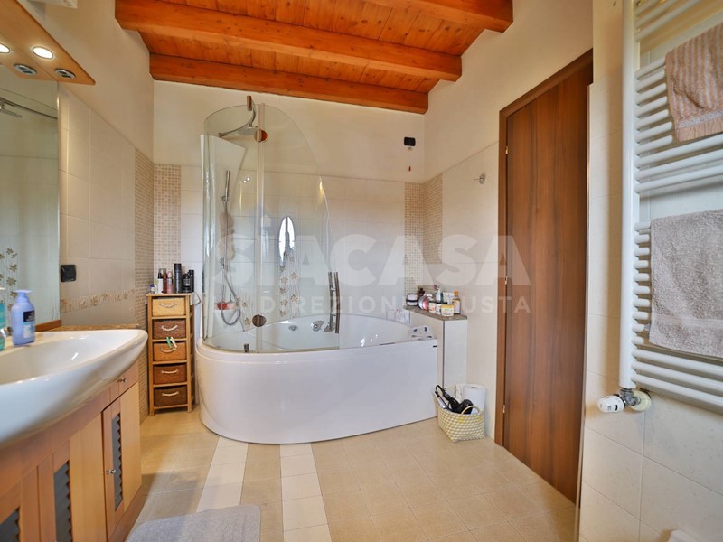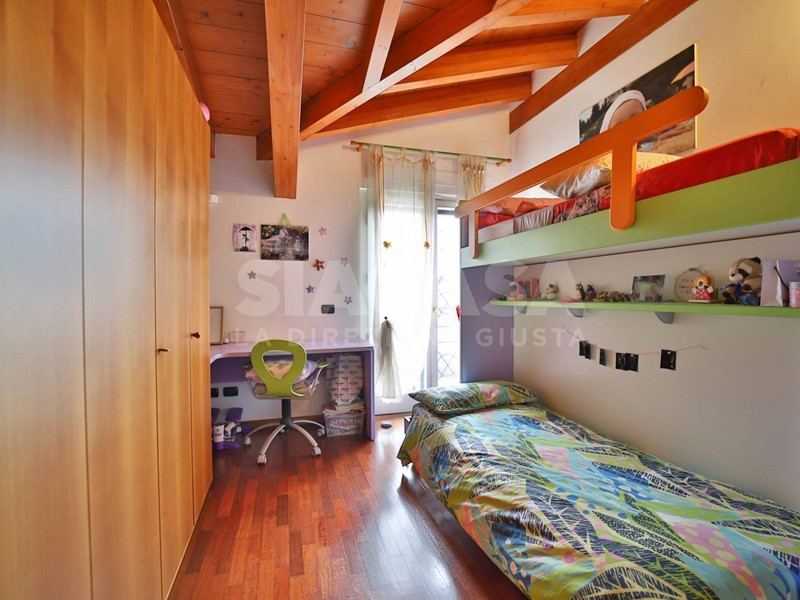 SPAZIOSA VILLA BIFAMILIARE - CLASSE ENERGETICA B - IN VENDITA A BUSNAGO IN VIA LIBERTA. Propone Geom. Filippo Bucci, in contesto riservato, recente villa bifamiliare di ampia metratura, disposta su tre livelli, con box doppio in larghezza. La soluzione, ultimata nel 2008, ha laccesso pedonale indipendente ed è così composta: PT ingresso, spaziosa zona living con cucina a vista (possibilità di chiuderla per renderla abitabile, ampia balconata e bagno di servizio; P1 secondo bagno con vasca idromassaggio, due camere singole, camera matrimoniale con cabina-armadio e balconata; PI taverna con stufa, bagno/lavanderia con doccia e accesso diretto al box doppio in larghezza. Esternamente troviamo il giardino di circa 240 mq con una zona porticato ideale per mangiare allaperto ed un piazzale di circa 60 mq, antistante il box, dove è possibile parcheggiare altre autovetture. La villa è dotata di cappotto esterno ed è già accessoriata con antifurto, climatizzazione, irrigazione automatica, grate di protezione e tende motorizzate. Il riscaldamento è a pavimento e la zona notte è completamente mansardata con travi a vista in legno. Ideale per chi è alla ricerca di una soluzione con locali vivibili e in zona tranquilla e riservata. Il prezzo è di Euro 395.000.