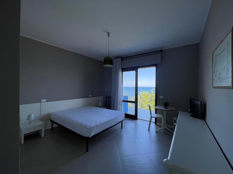 -	Piano terra composto da soggiorno/ sala da pranzo, camera, camera da letto con bagno, altro bagno e terrazza sul mare;
