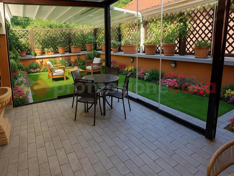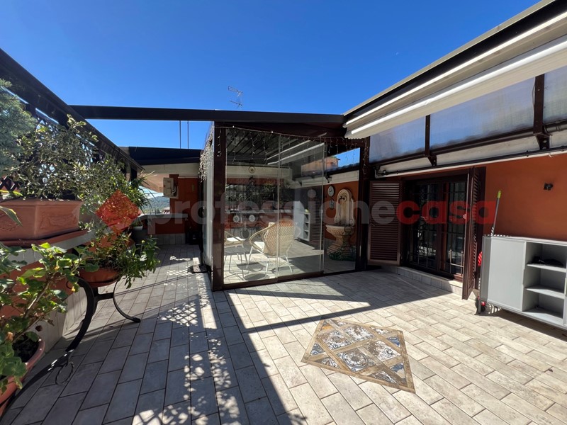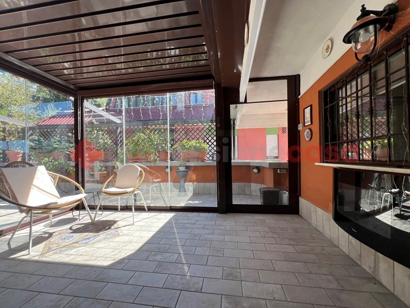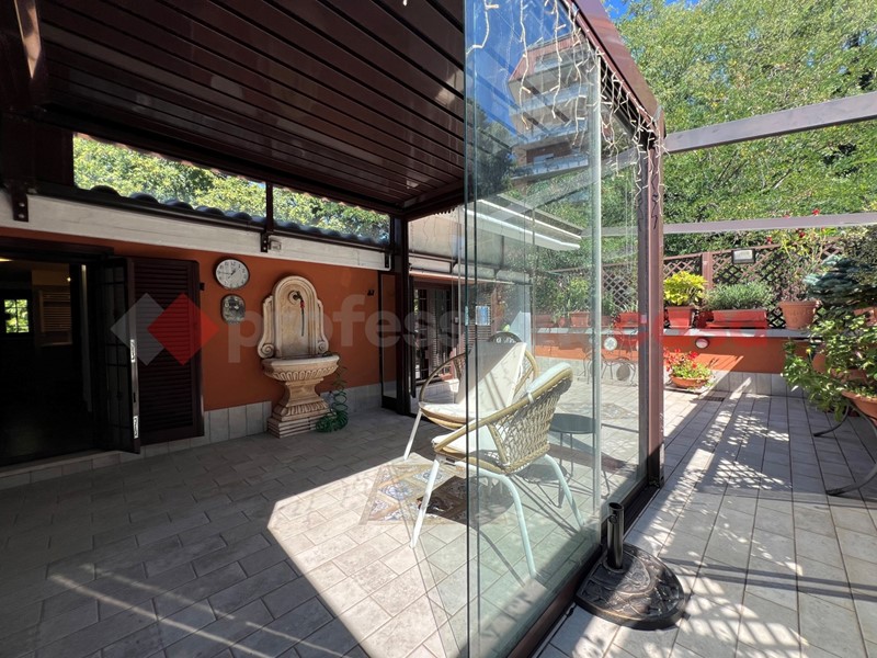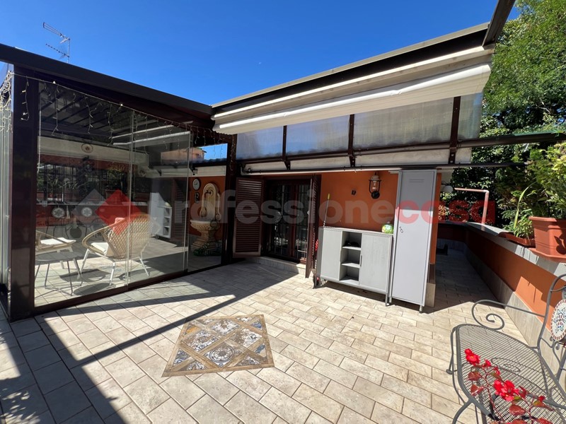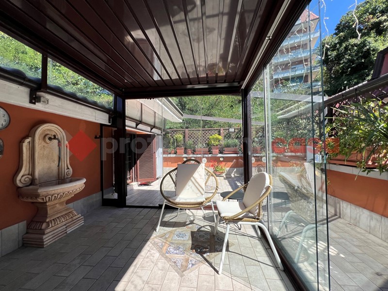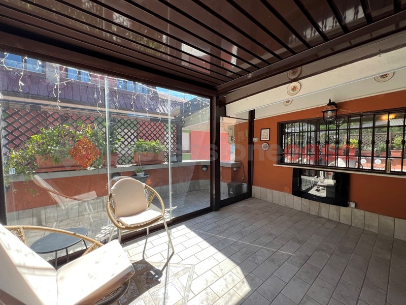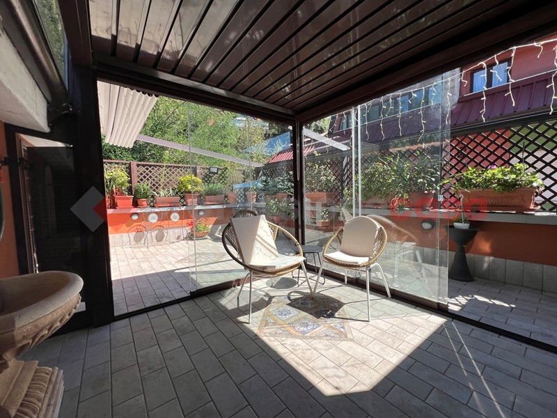 Fiore all'occhiello dell'appartamento è il terrazzo, in parte coperto da una elegante pergolato in vetro, ideale per godersi pranzi, cene e momenti di relax all'aperto.