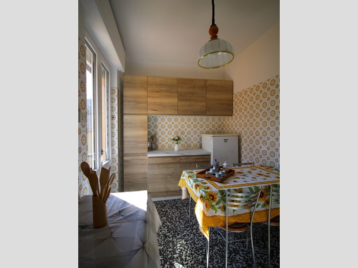 L'appartamento è così strutturato: ingresso, cucina abitabile con comodo balconcino, soggiorno con affaccio su terrazzo panoramico, due camere da letto e bagno con doccia.