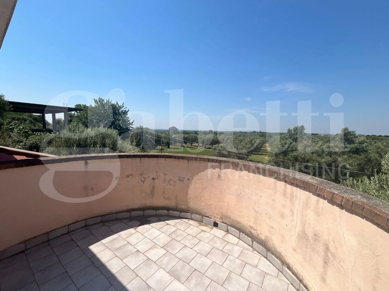 Circondata da TERRENO di circa 3200 mq, finemente suddiviso tra elegante giardino all'inglese, varietà di piante ornamentali tra cui ulivi e cycas, con laghetto ornamentale.