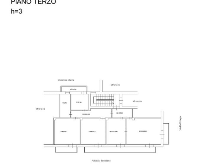 L'immobile è così composto: ingresso su disimpegno, 2 camere, una cameretta, salone, cucina semi-abitabile, un servizio e veranda. La casa ha due esposizioni e tre balconi, riscaldamento autonomo e pompe di calore.