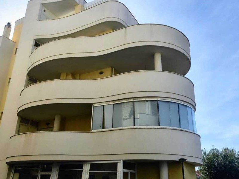L'abitazione è composta da comoda zona soggiorno pranzo all'ingresso, cucinotto con finestra, disimpegno, due ampi vani letto e due bagni. L'esposizione tripla con affaccio su grande veranda di mq 80, anch'essa con tripla esposizione e la vista mare sono il vero valore aggiunto di questa proprietà.