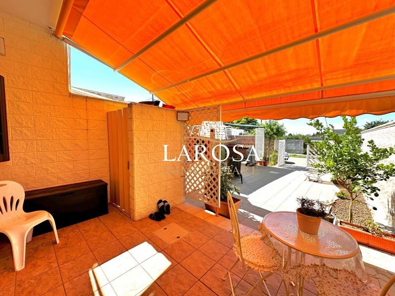 Larosa Immobiliare è lieta di proporre una splendida villetta a schiera completamente indipendente, con ampio villino antistante e lastrico solare di proprietà. Situata in prossimità del mare e delle spiagge libere, questa proprietà vanta una superficie del lotto di circa 190 mq, una superficie coperta di circa 71 mq e una superficie calpestabile di circa 60 mq. L'intero edificio è stato completamente ristrutturato con finiture di pregio. DESCRIZIONE DELL'IMMOBILE: Il lotto, di forma rettangolare, è ubicato nella Marina di Torre Specchia Ruggeri (località Villaggio Nettuno) nel comune di Melendugno (LE), e si estende da ovest verso est, con l'ingresso esposto ad ovest. L'accesso avviene tramite pubblica via. L'immobile è posizionato nell'angolo nord del lotto e completamente recintato su tutti e quattro i lati da una recinzione in muratura alta circa 2 metri, rifinita con rivestimento in piastrelle/mattoni. Nella parte antistante troviamo un ampio cancello carrabile in ferro verniciato. Entrando, ci accoglie un ampio villino di circa 120 mq che comprende la parte antistante di circa 90 mq e quella laterale di circa 30 mq, quest'ultima coperta da tettoia in legno e completamente pavimentata. Di fronte all'ingresso dell'abitazione, troviamo un angolo verandato con doccia esterna e barbecue con focolare a legna, coperti da tenda parasole richiudibile. Dal villino si accede all'immobile completamente ristrutturato, dove troviamo un soggiorno/cucina con finestra e porta per il villino laterale coperto da tettoia. Proseguendo, un corridoio porta alla zona notte con una camera da letto matrimoniale sulla destra e due comode camere singole, tutte e tre dotate di finestra. Troviamo poi il bagno principale con doccia, lavabo, servizi igienici e finestrella. Nella parte laterale del villino, sotto la tettoia sul lato sud, troviamo un piccolo soggiorno/salotto/sala da pranzo con un angolo cottura aggiuntivo, un piccolo spazio esterno retrostante con lavabo e un secondo bagno con doccia, lavabo e servizi igienici. Questa villa completamente indipendente offre ottima privacy, ampi spazi interni ed esterni, ed è già abitabile in quanto completamente ristrutturata. Si presta perfettamente ad essere personalizzata secondo le esigenze dell'acquirente. Questa è un'ottima opportunità di investimento, con prezzo trattabile.