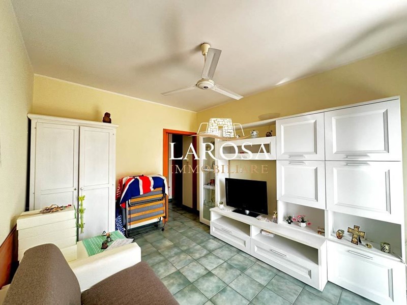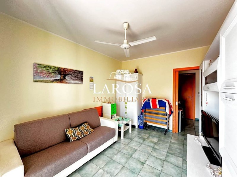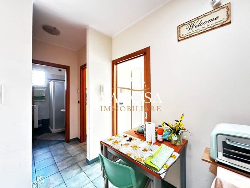 L’appartamento è accessibile da una rampa di scale comuni che conduce al pianerottolo condiviso. L’ingresso apre su una zona living con angolo cottura attrezzato. Dal soggiorno, una porta-finestra conduce al balcone verandato, ideale per momenti di relax all’aperto e con una piacevole vista sul villaggio.