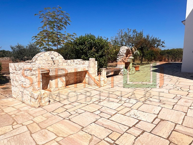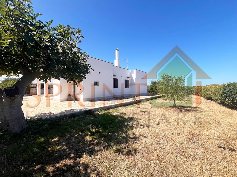 Monopoli - Zona Baione - nella primissima campagna e a soli 3 Km da Monopoli, proponiamo in vendita libera e luminosa villa indipendente terminata nei primi anni 2000, composta da ingresso su porticato coperto, ampio soggiorno, cucina in muratura, 2 vani letto e bagno. All'esterno completa l'immobile un ampio piazzale pavimentato, area pavimentata e attrezzata da forno a legna, barbecue, lavabo e terreno in parte destinato a giardino e parcheggio di complessivi 8500 mq circa. Ottimo stato di manutenzione. Libero subito. Prezzo ribassato da 298.000 euro.