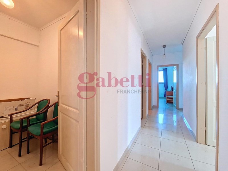 L'appartamento, dotato di doppio ingresso sul vano scale condominiale, internamente si compone di un ampio soggiorno di 40mq con angolo cottura ed accesso diretto al terrazzo, disimpegno notte, tre grandi camere matrimoniali (di cui due con accesso al terrazzo), doppi servizi (uno con finestra) e due comodi ripostigli. Completa la proprietà un posto auto esclusivo in cortile condominiale.