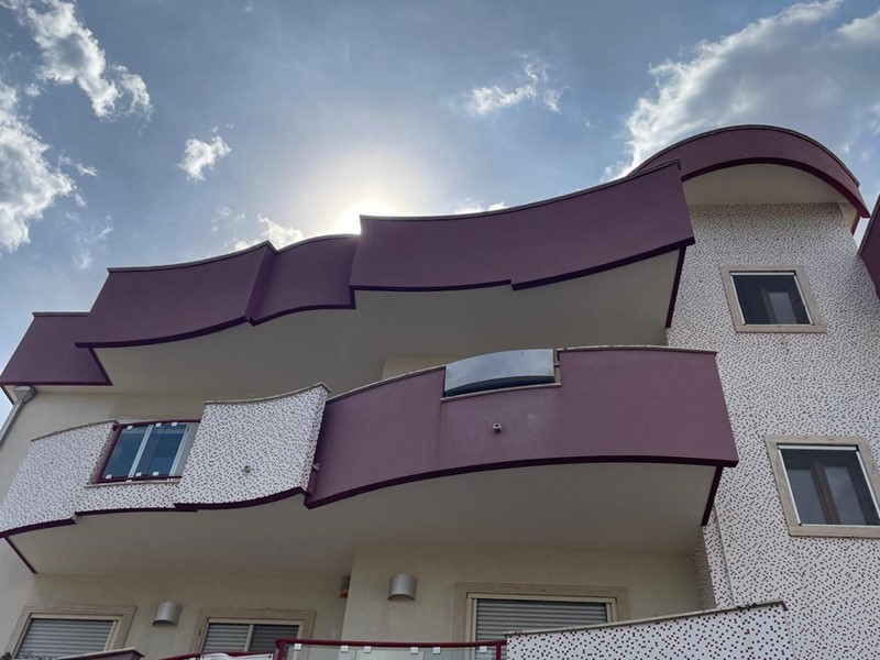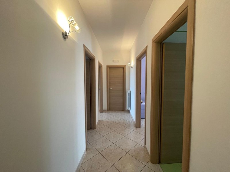 l'appartamento si compone di ingresso in ampio soggiorno sul lato sinistro e cucina abitabile sul lato destro, ambedue con accesso a due comodi balconi soggiornabili. Da una porta centrale ai due vani principali si accede al corridoio che procede verso il bagno, ripostiglio due camere doppie di cui una con cabina armadio ed una camera singola.