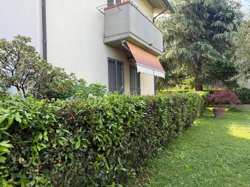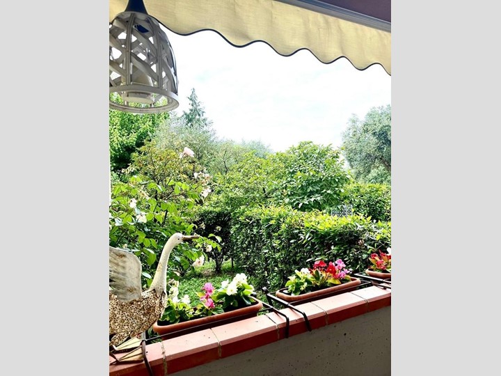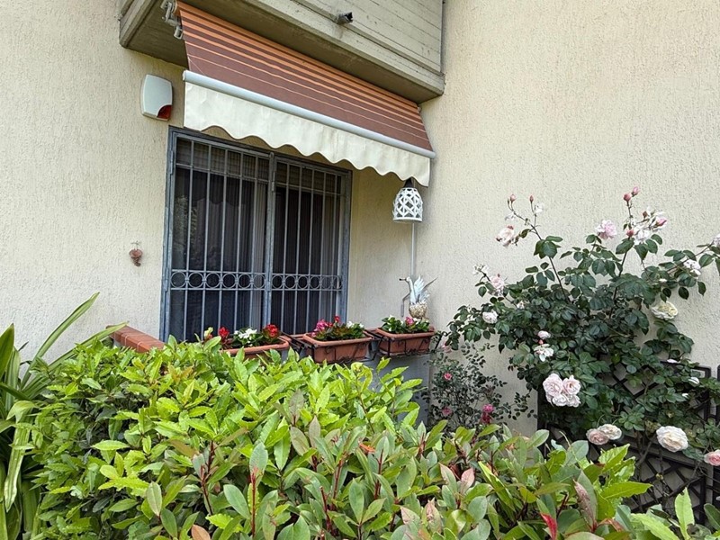 Esternamente piccolo giardino che gira intorno ad appartamento.