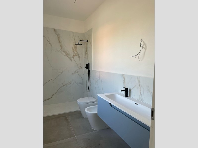 Salendo al piano superiore, si apre un disimpegno arioso che collega tre camere da letto, ognuna con il proprio fascino. Una delle camere è impreziosita da un bagno padronale e un delizioso terrazzo, perfetto per godersi momenti di tranquillità. Completa il piano un ulteriore bagno, ben rifinito.