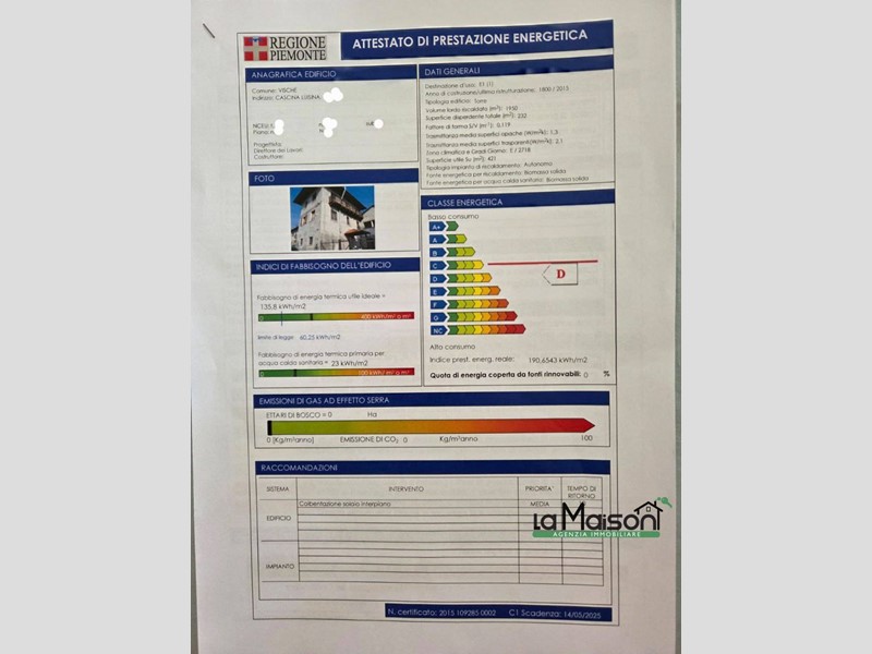 La proprietà è stata ristrutturata nel 2016 con attenzione ai dettagli e alla sostenibilità. Dotata di un impianto fotovoltaico da 6 kW con accumulo per ridurre i costi energetici, una pompa di calore per il riscaldamento efficiente, infissi in legno con doppio vetro per isolamento termico e acustico, un cancello elettrico per maggiore sicurezza e predisposizione antifurto per proteggere la tua proprietà.