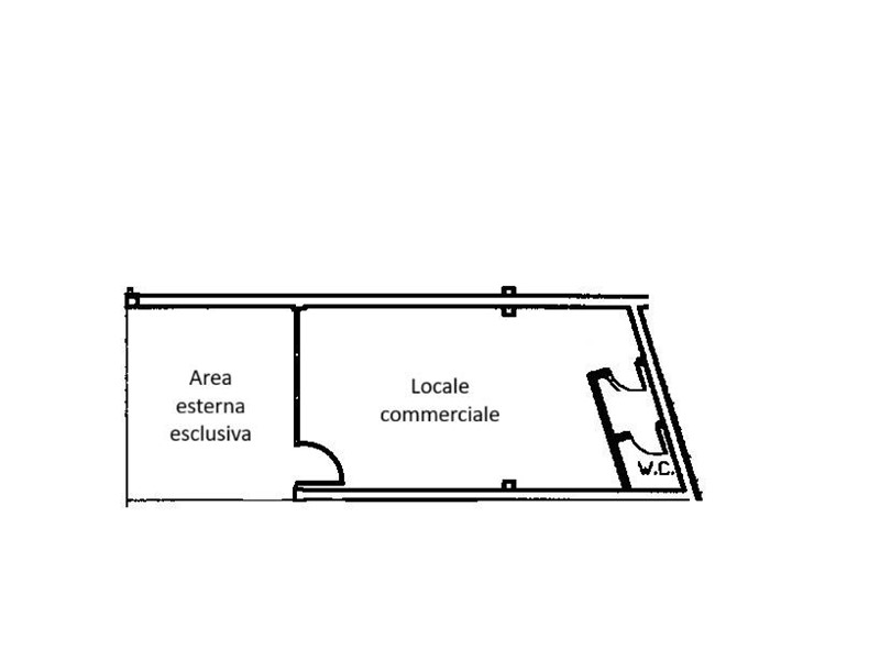 Il negozio è di 41 mq. con bagno, una vetrina fronte strada e l'area antistante di pertinenza del locale. Vetrina in alluminio e serranda elettrica.