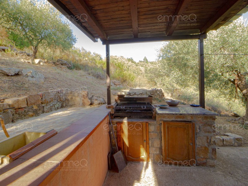 La proprietà è circondata da circa 7.000 mq di terreno privato, coltivato con ulivi, agrumi, alberi da frutto e un suggestivo pergolato di vite, che offre anche copertura per due posti auto.