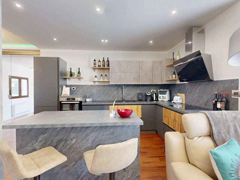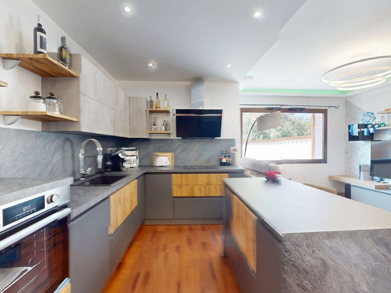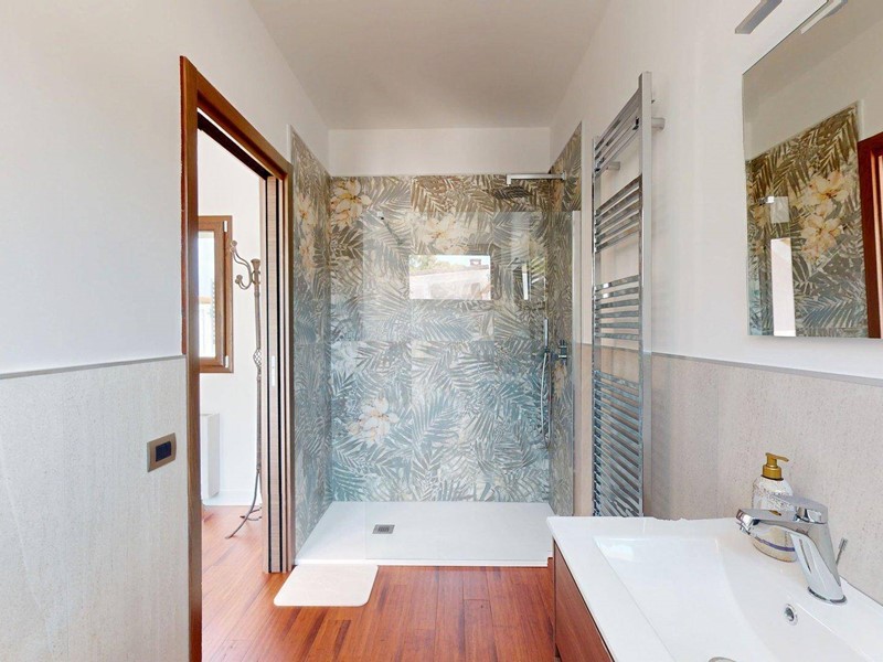 Questa residenza non è solo bella: è anche tecnologicamente avanzata e sostenibile. Il sistema di riscaldamento Ariston con termoconvettori in ogni ambiente assicura comfort diffuso, mentre nei bagni il piacere è amplificato dagli scalda salviette. Lacqua sanitaria è gestita da un moderno scaldacqua termodinamico da 110 litri, garanzia di efficienza e continuità. Sul tetto, i pannelli fotovoltaici con batterie di accumulo da 10 kW permettono unimportante autonomia energetica, abbinando risparmio e rispetto per lambiente. Lintera abitazione è rivestita da un cappotto termico in poliuretano espanso da 10 cm, che assicura un eccellente isolamento e comfort abitativo in tutte le stagioni.