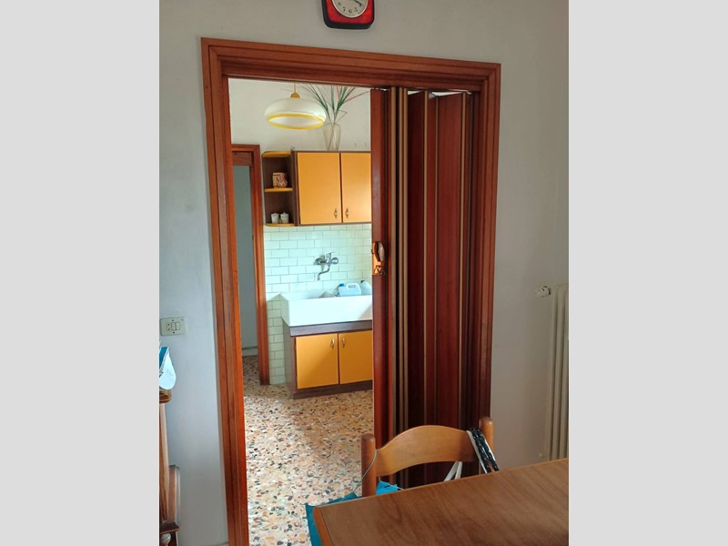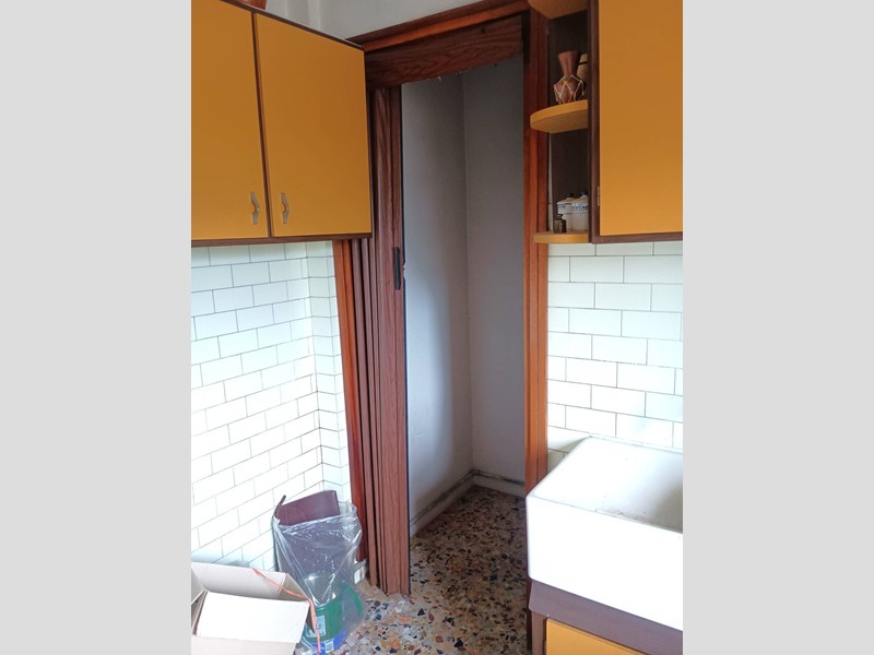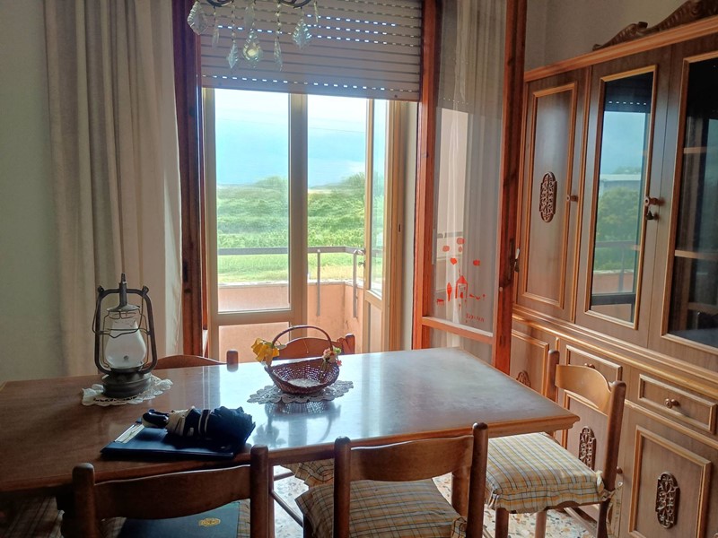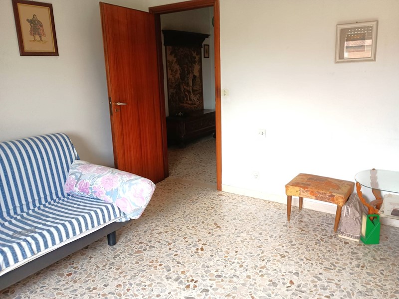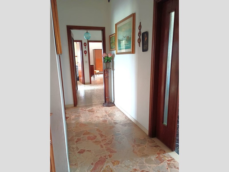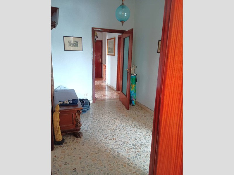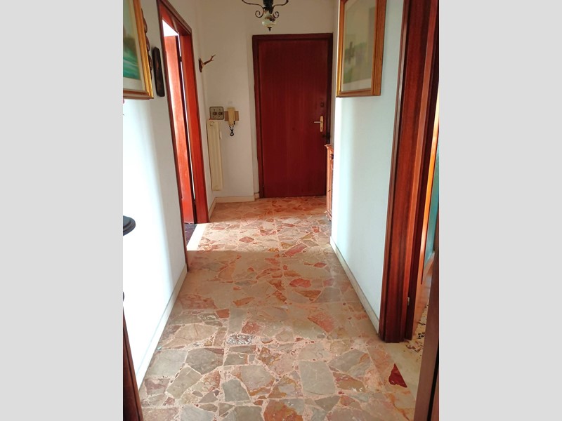 L'appartamento è composto da ingresso, sala con terrazzo, soggiorno con terrazzo, cucinotto, ripostiglio, disimpegno notte, due camere matrimoniali, una camera singola, bagno con vasca. L'appartamento è inoltre dotato di una "terrazza" condominiale uso stenditoio posto all'ultimo piano dell'edificio. Completa la proprietà al piano terra il garage di circa 14mq , oltre a posti auto scoperti.
