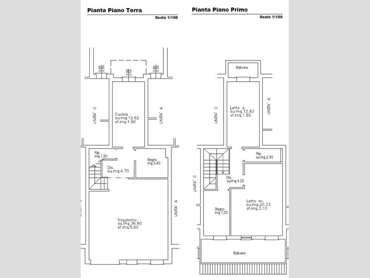 Piano Primo: una camera matrimoniale di oltre 20 mq con balcone privato, una seconda camera doppia con balcone. Ripostiglio. Bagno. Ripostiglio in sottotetto accessibile tramite scala retrattile.