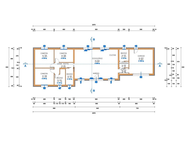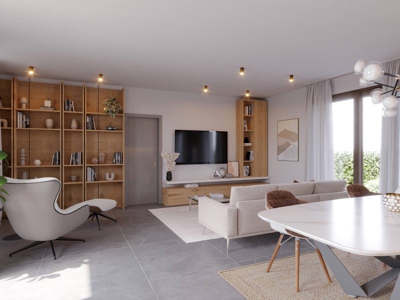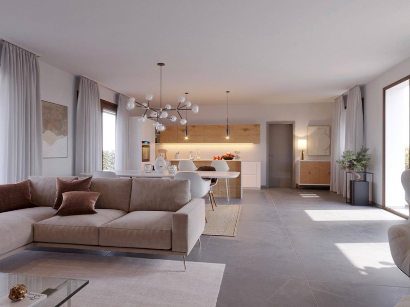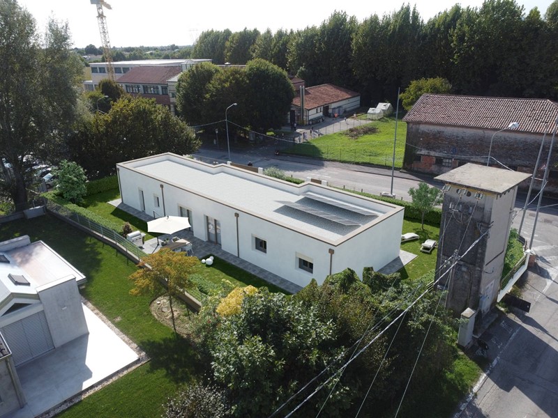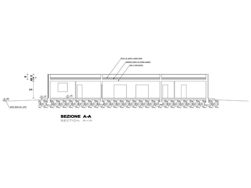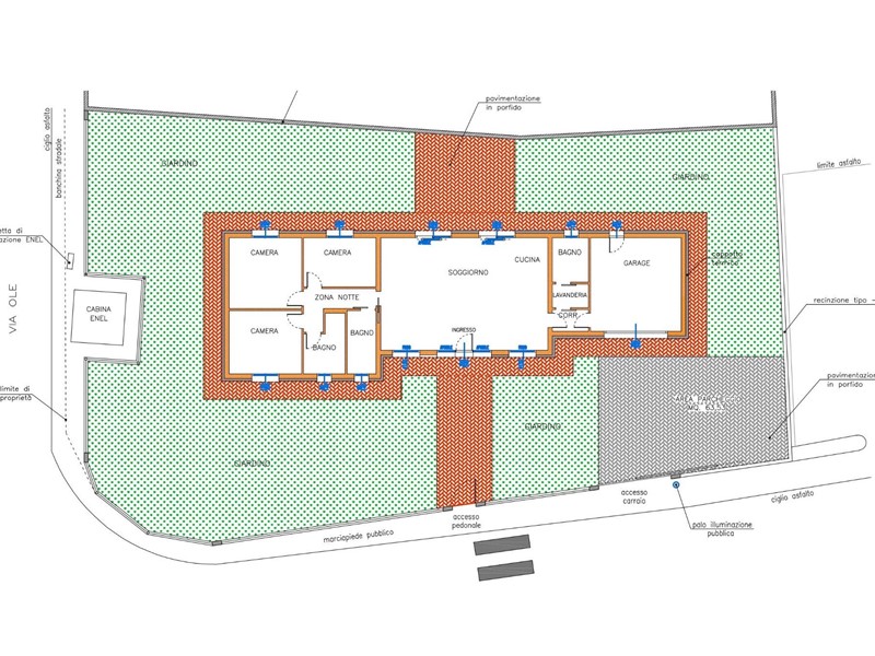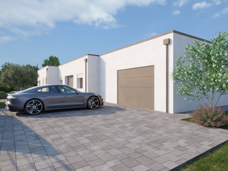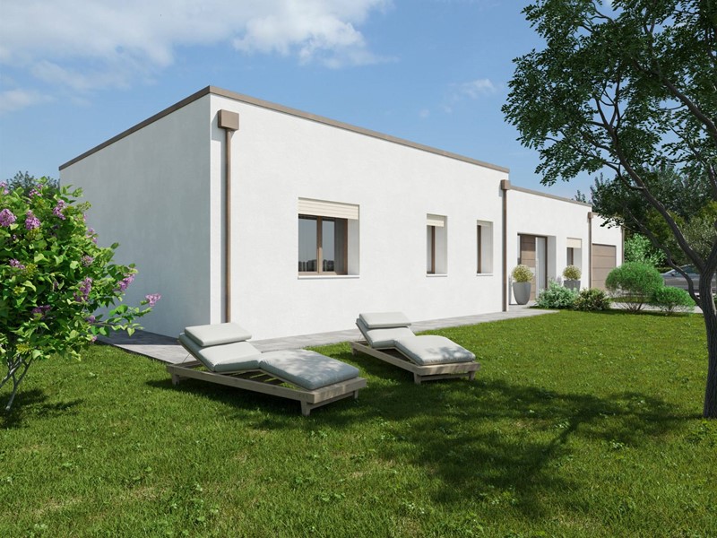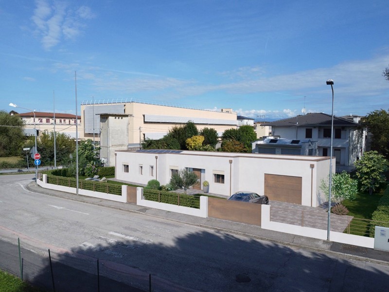 Allinterno di area esclusiva di oltre 790 mq, attorniata dalla pubblica via e sviluppata sul un unico livello, la villa si distingue grazie al design accattivante e innovativo. La zona living è illuminata da ampie vetrate scorrevoli e simmetriche, incorniciate da insoliti oblò che contribuiscono a creare un interessate prospetto. La zona notte si compone di tre camere, dalle geometrie regolari e ben distribuite, ed è completata da due sale da bagno. La doppia autorimessa è internamente collegata allabitazione, per mezzo di un pratico disimpegno, che conduce ad un terzo bagno e alla lavanderia. Il verde privato è corredato di spazi pavimentati per il soggiorno estivo e si sviluppa su tutti i lati. La costruzione risponde ai più recenti standard costruttivi e sarà dotata di impianti per la produzione di energia da fonti rinnovabili, a vantaggio dellefficienza energetica e dei costi di gestione. Viene concessa ampia facoltà di personalizzazione delle finiture e di scelta dei materiali.
