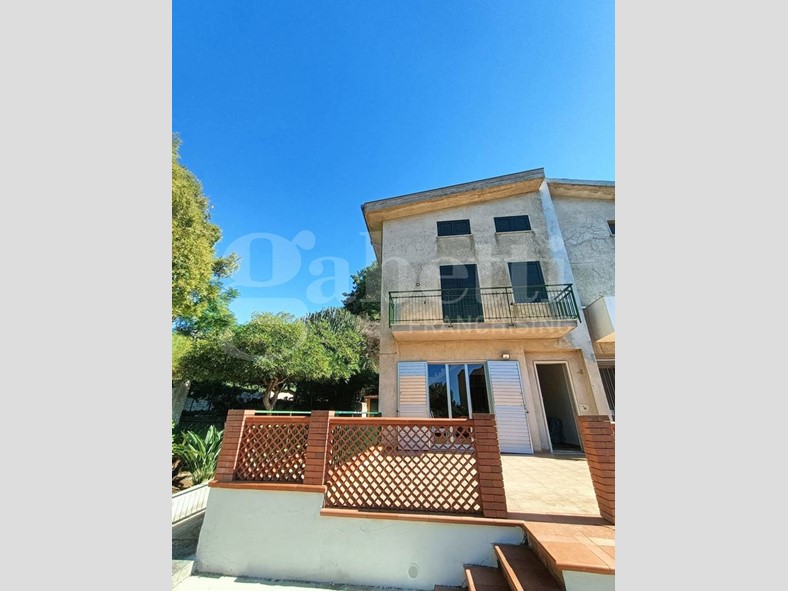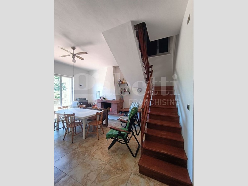 Su lotto di mq. 500,circondata da verande e giardino, l' immobile è suddiviso in ingresso su soggiorno con camino, bagno e cucina al piano terra, tre camere con bagno al piano primo.
