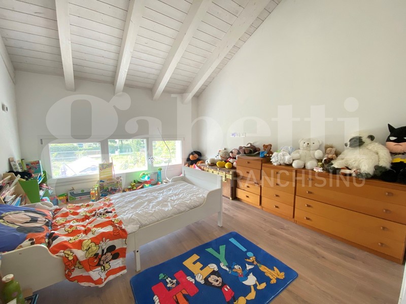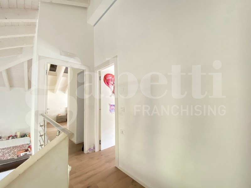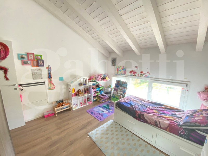 Al piano superiore si sviluppa la zona notte con tre ampie camere, tra cui la padronale con bagno privato, un secondo bagno con doccia e una comoda lavanderia.