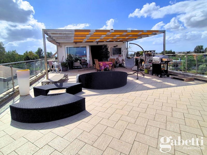 La soluzione si compone, da 4 vani + acc.ri al primo piano e da cucina-salone + acc.ri al secondo piano con accesso diretto al terrazzo di 100 mq, con quadrupla esposizione.