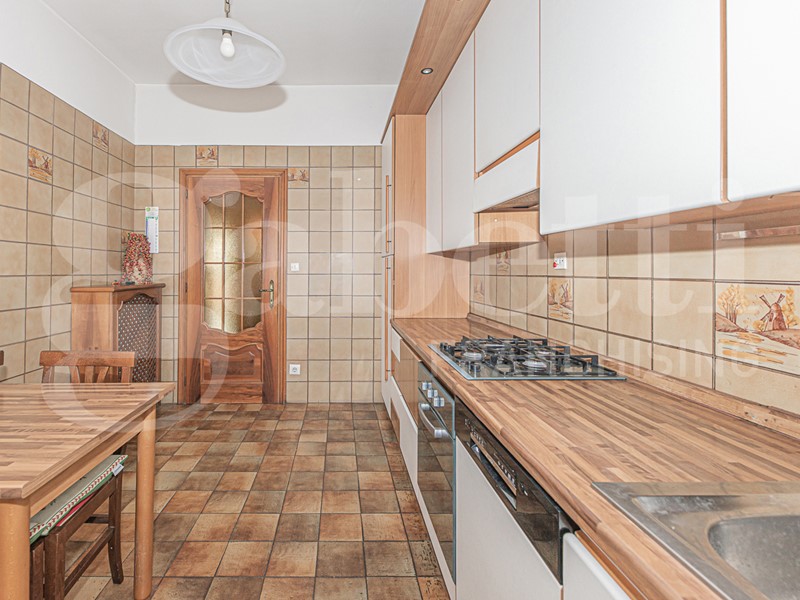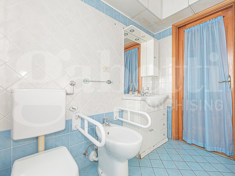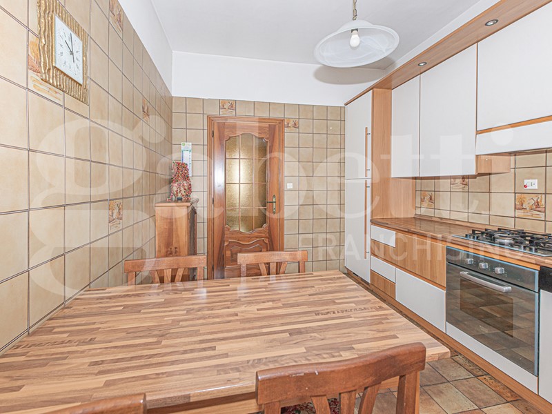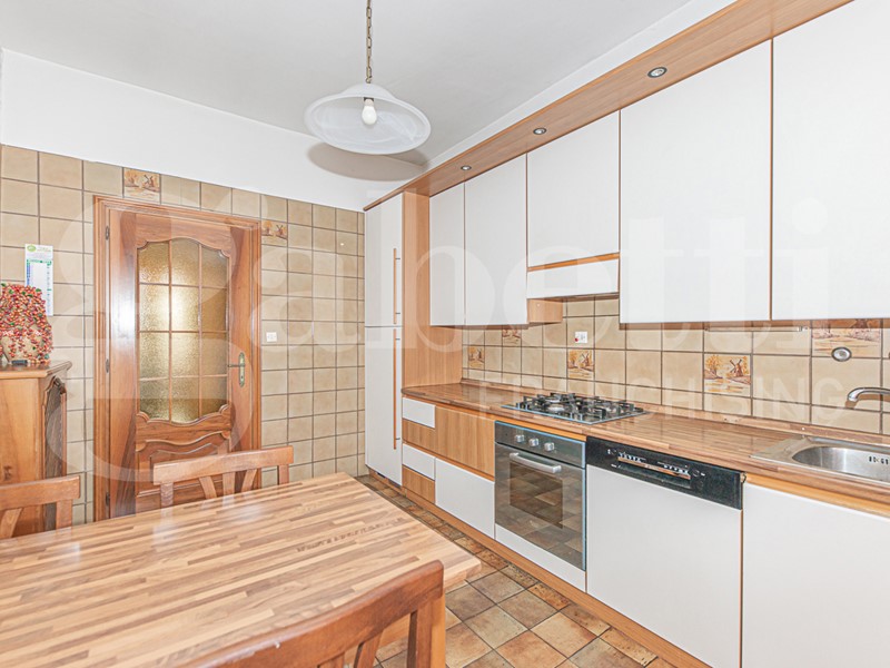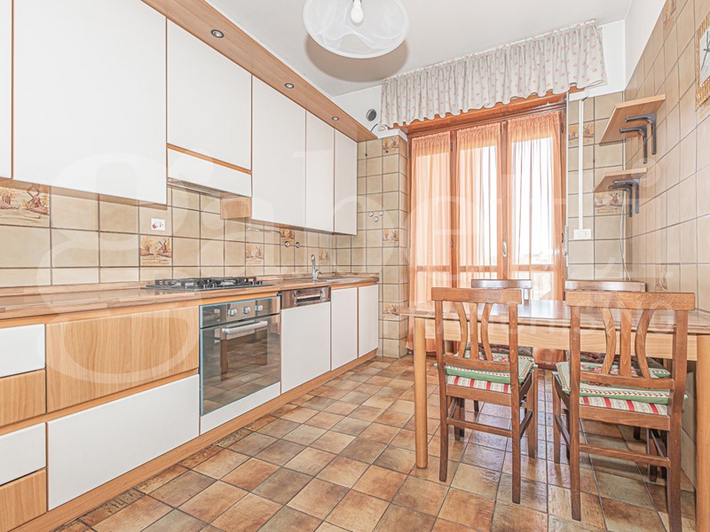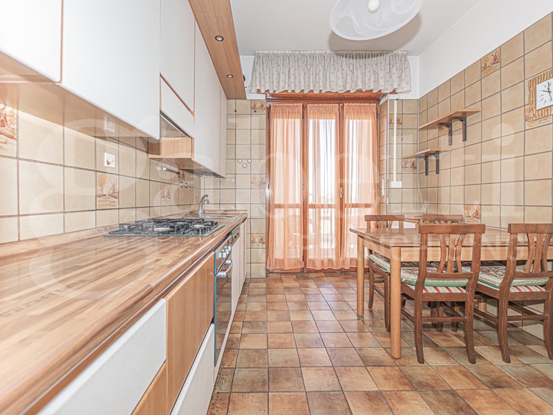 La soluzione abitativa è composta da una cucina abitabile, tre camere da letto con parquet, un bagno con doccia e spazio per la lavatrice. Le camere da letto sono caratterizzate da un elegante pavimento in parquet, mentre il riscaldamento è centralizzato per un comfort ottimale in ogni stagione.