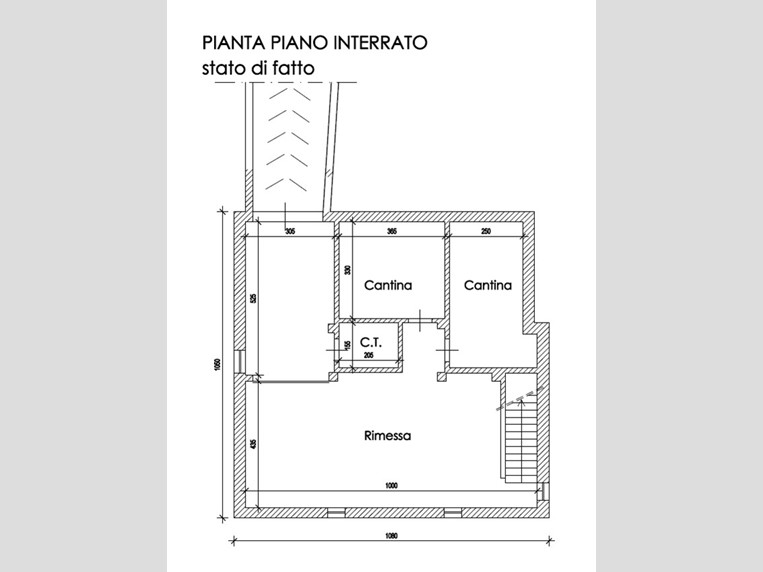Al piano interrato ampia autorimessa, 2 cantine ed il locale caldaia. Completa la proprietà la tettoia in parte chiusa di circa 90 mq.