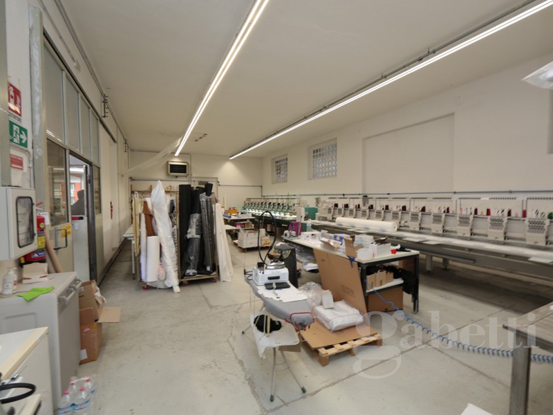 La pavimentazione dell'immobile è in cemento, il portone di ingresso (scorrevole all'interno del deposito) è in ferro e vetro. Altezza interna di 4.35m.