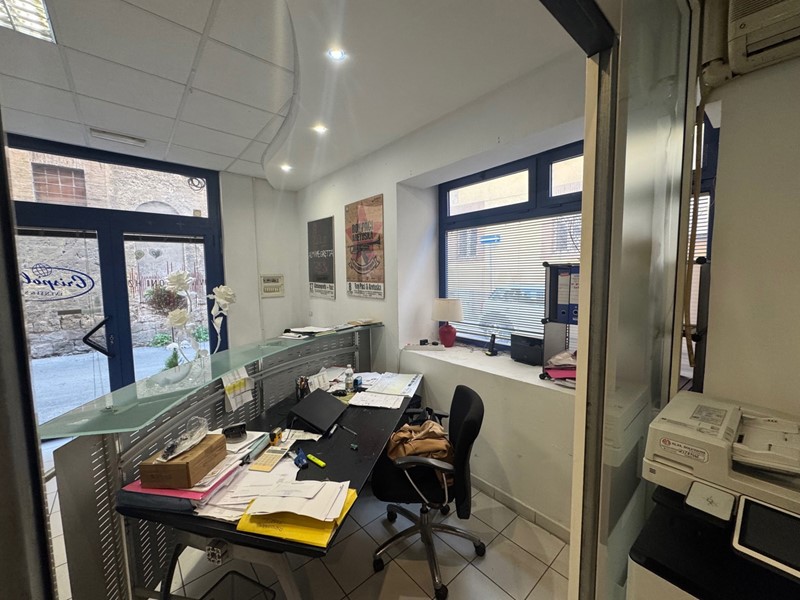 Grazioso ufficio a piano terra con vetrine in zona centralissima angolo via del Mercato vecchio via Manassei, composto da: ingresso, reception, un ufficio grande e un'altro ufficio, due ampi ripostigli, bagno. Climatizzato e tutto ristrutturato. Info 0744455388