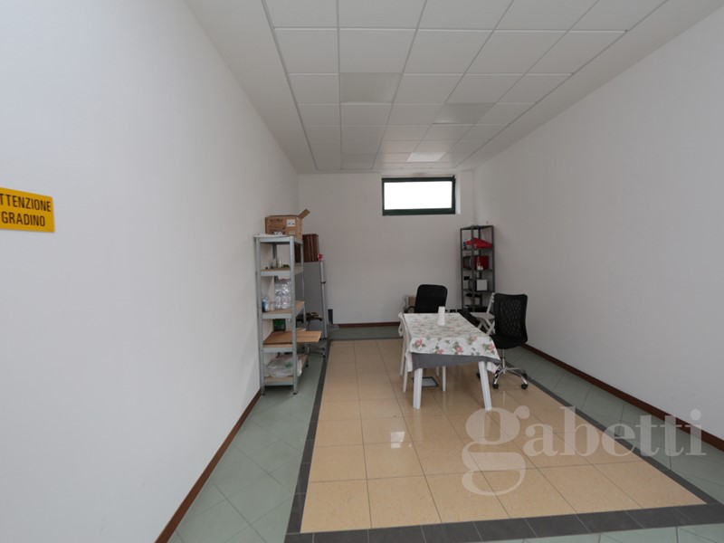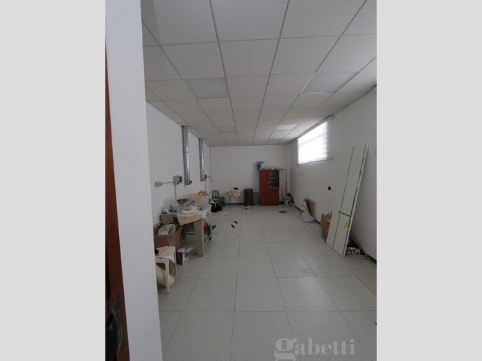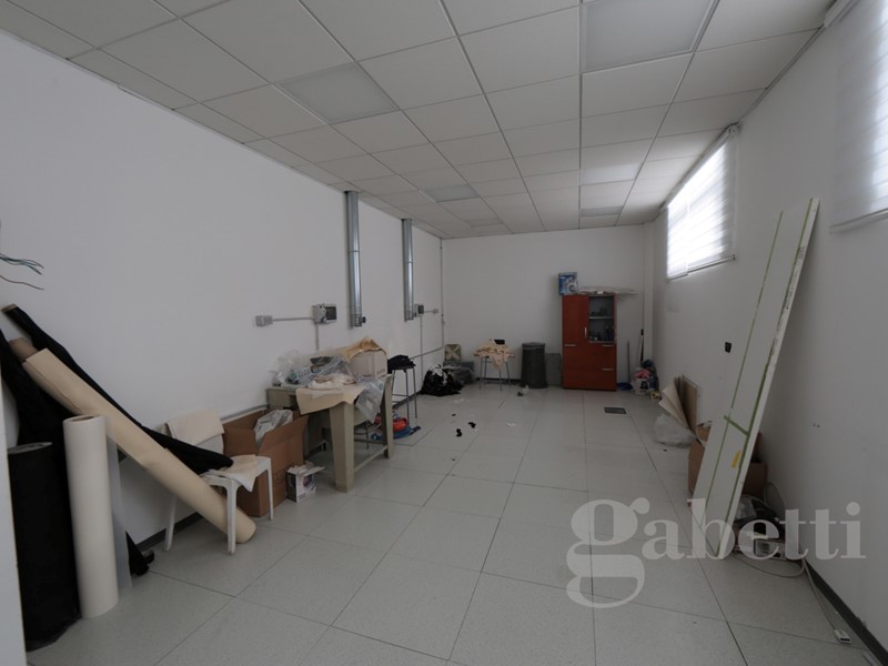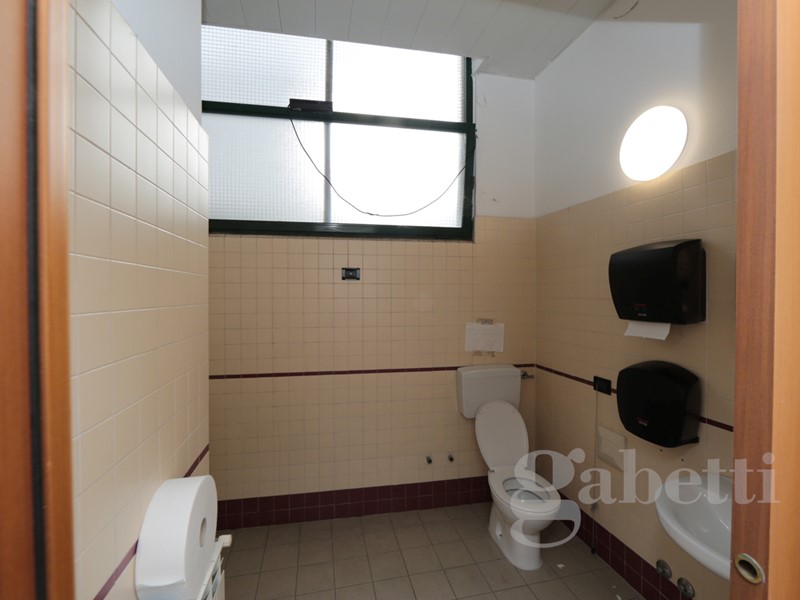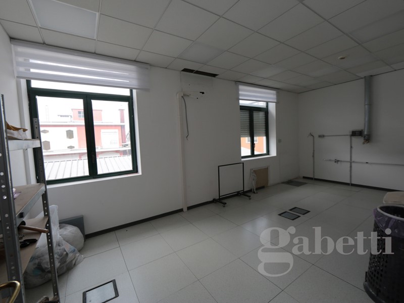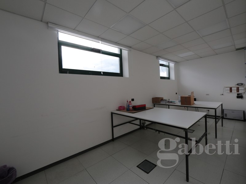Il bagno è piastrellato e rivestito con piastrelle di ceramica, mentre il resto della superficie ha pavimento galleggiante. Gli uffici sono controsoffittati con quadrotti in cartongesso e illuminazione incassata a soffitto.
