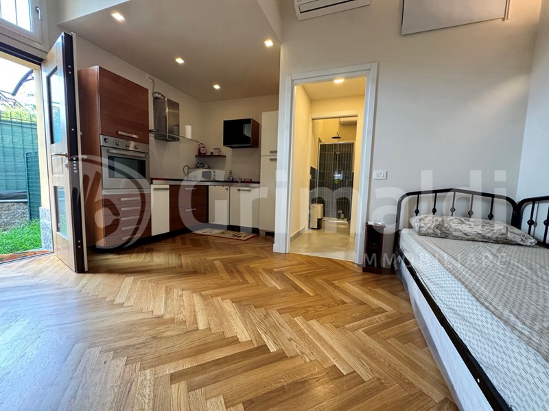 In una piccola palazzina di due piani costruita negli anni '40, proponiamo in AFFITTO MONOLOCALE di 35mq posto al piano terra completamente ristrutturato e arredato, dotato di lavatrice e lavastoviglie e così composto: living con cucina a vista e piano cottura ad induzione, un bagno cieco con doccia e un cortile esterno di proprietà di 10mq. Dotato di porta blindata e di serramenti in PVC con doppi vetri a garantire una maggiore silenziosità. La pavimentazione in parquet chiaro rende l'ambiente confortevole e luminoso. Presente l'aria condizionata, sistema di riscaldamento e acqua calda autonomo ed elettrico. Nel canone di locazione (830?/MESE) sono comprese le spese condominiali le utenze sono a carico del conduttore. Non si accettano animali domestici. L'immobile sarà disponibile dal 01/01/2026.