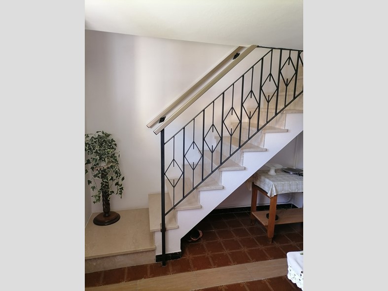 Per accedere al piano superiore, che è il cuore della casa, puoi utilizzare sia la scala interna che una comoda scala esterna. Il primo piano comprende un ingresso, una luminosa zona giorno con soggiorno e cucina, due camere da letto e un bagno.
