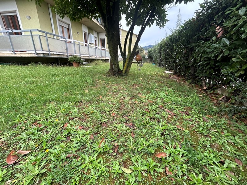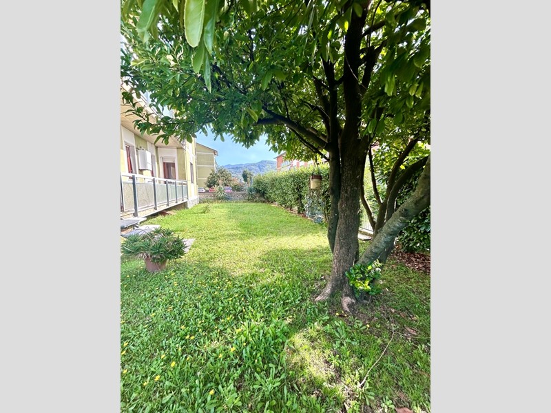 Luminoso appartamento al piano terra rialzato, composto da ampio soggiorno con camino e cucina a vista, disimpegno, camera matrimoniale, camera doppia e bagno finestrato con doccia. Dalla zona giorno e dalla camera matrimoniale si accede a una spaziosa terrazza e al giardino privato di circa 180 mq, ideale per momenti di relax all’aperto.