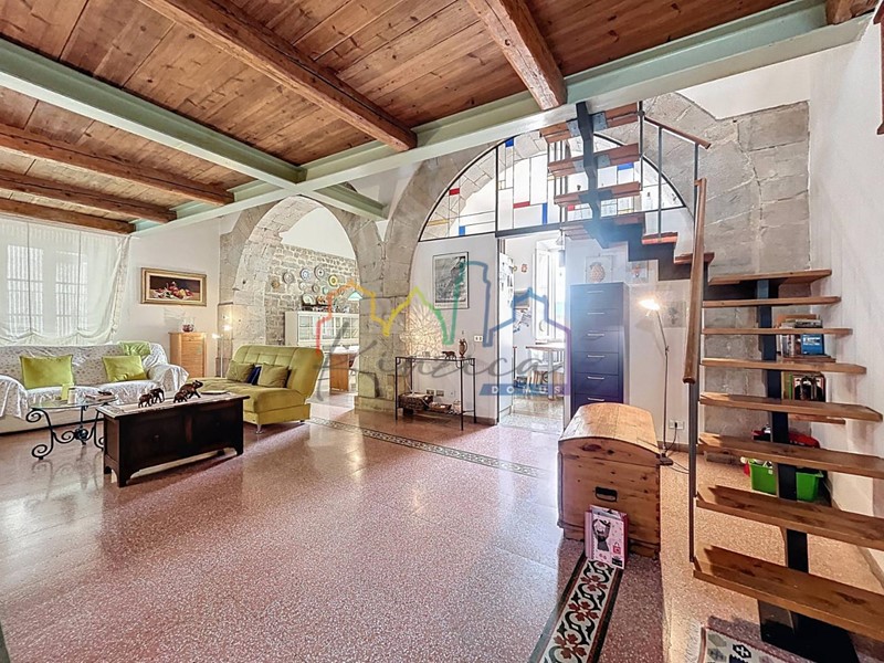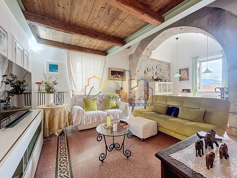 L’immobile, luminosissimo e caratterizzato da splendidi affacci, si distingue per il perfetto connubio tra fascino storico e comfort moderno. L’ingresso si apre su l'ampio salone con suggestivi archi in pietra a vista del 1100, che donano unicità e prestigio all’ambiente. A seguire troviamo la zona pranzo, la cucina abitabile, la camera matrimoniale, la camera singola e il bagno con vasca.