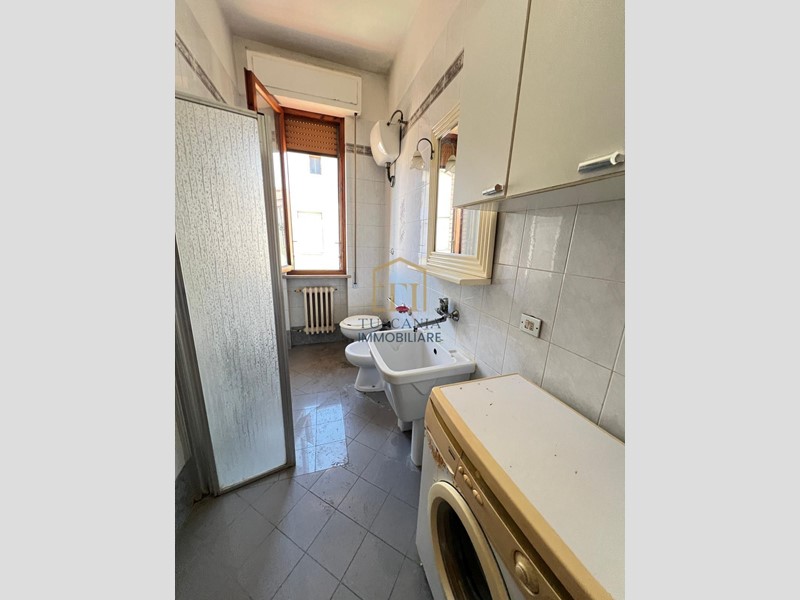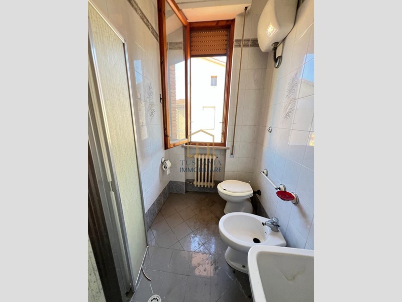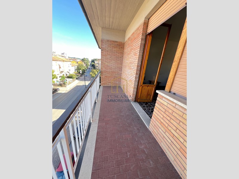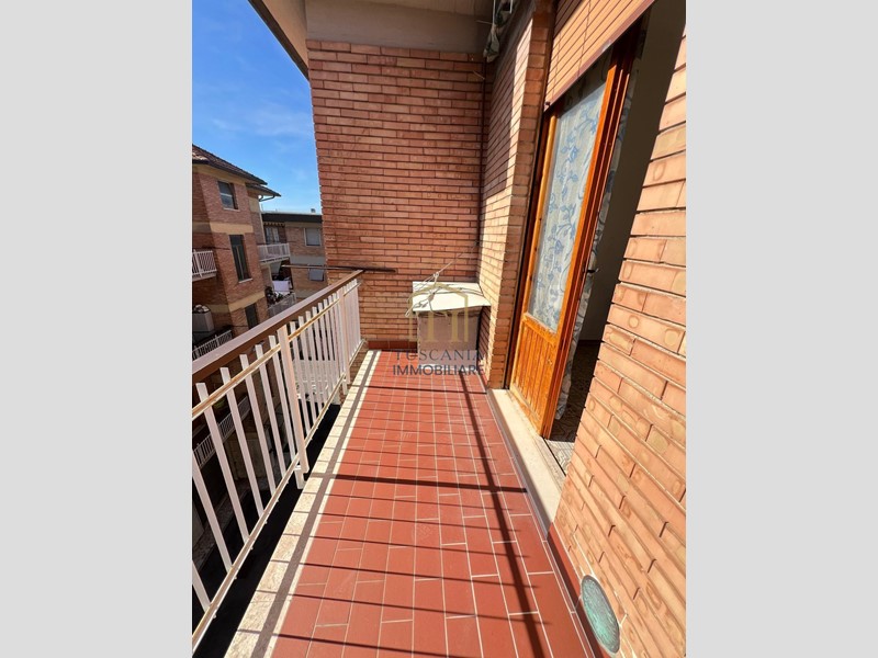 Poggibonsi- Via Pisana. Luminoso appartamento di 110 mq, posto al 3° ed ultimo piano (senza ascensore) in condominio di 6 appartamenti. L'appartamento è composto da soggiorno, cucina, ripostiglio, due camere matrimoniali, due terrazze, due bagni (uno con vasca e uno con doccia). Garage a piano terra di 15 mq