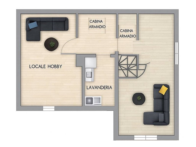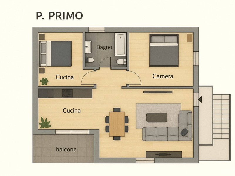 Piano Primo ampia zona giorno con affaccio su terrazzo esclusivo zona living con cucina a vista di 40 mq. - due camere da letto di cui una matrimoniale con cabina armadio più servizio al piano.