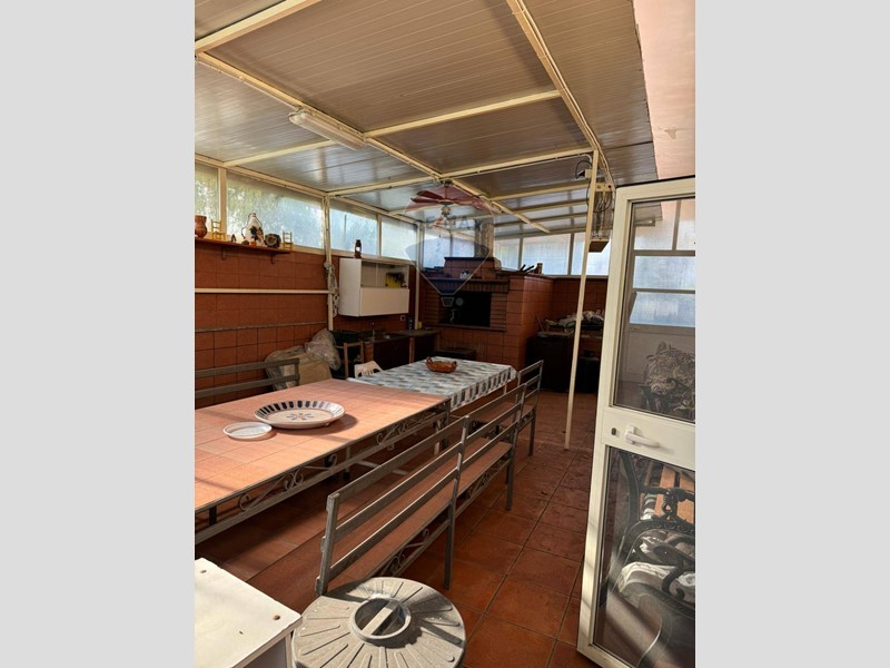 ampia cucina abitabile con accesso diretto a una veranda coperta e arredata, dotata di forno a legna e barbecue, ideale come estensione della zona giorno,