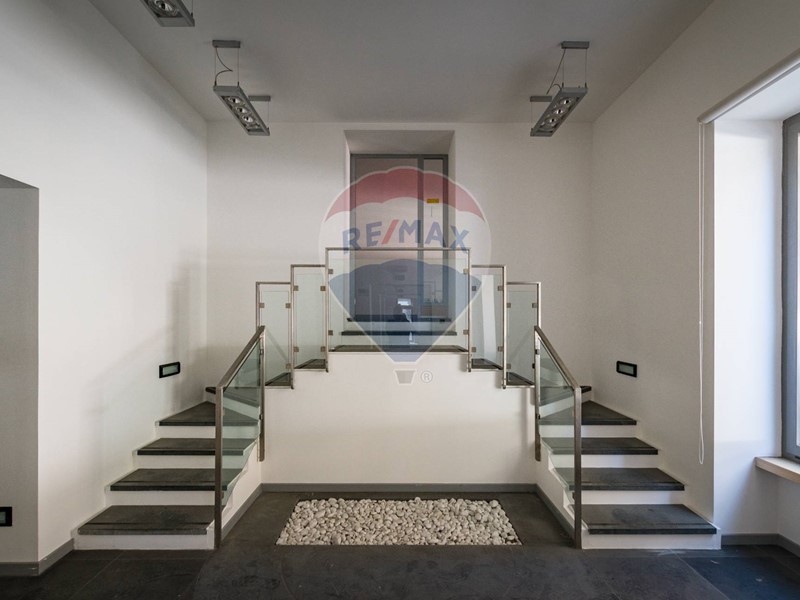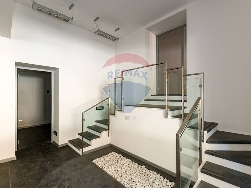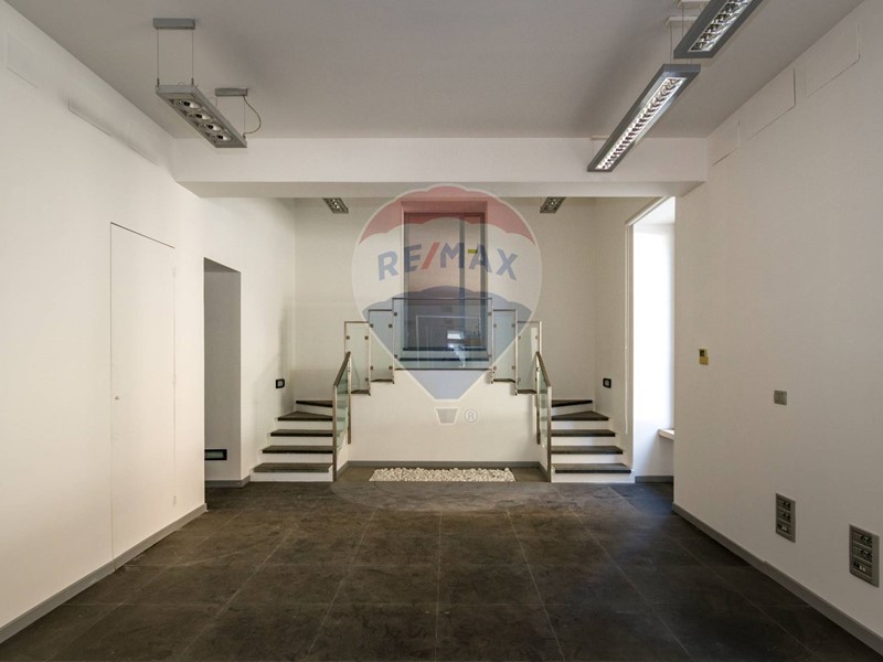 - Piano rialzato di 295 mq, con ingresso indipendente dalla strada attraverso un curato giardino daccesso, composto a sua volta da due livelli sfalsati: un primo ambiente daccoglienza e, tramite una scenografica scalinata interna, un piano ammezzato ideale per uffici direzionali, salette private o esposizioni riservate.