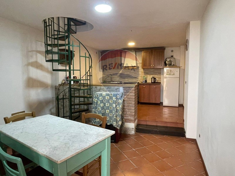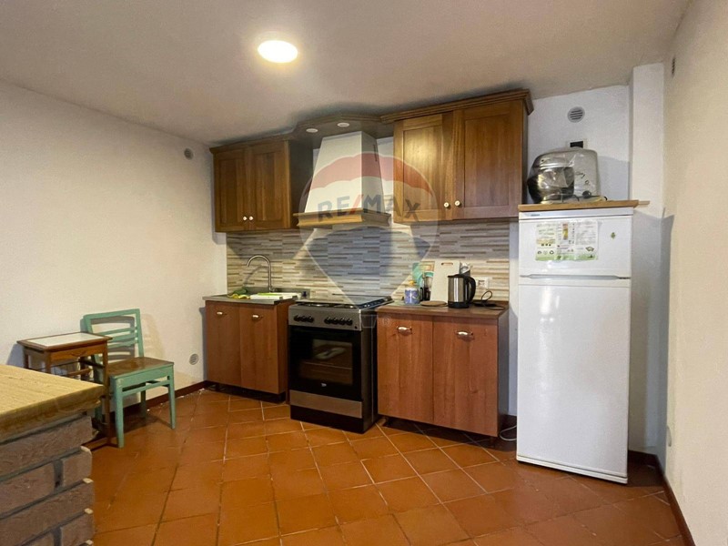 Al piano inferiore, una comoda cucina abitabile, accogliente e ben organizzata, con spazio sufficiente per pranzi e cene in famiglia o con amici.