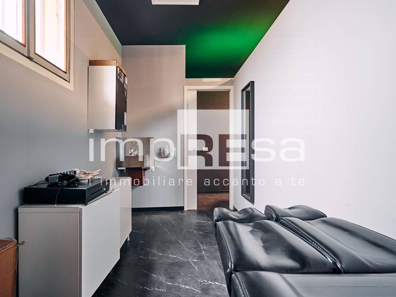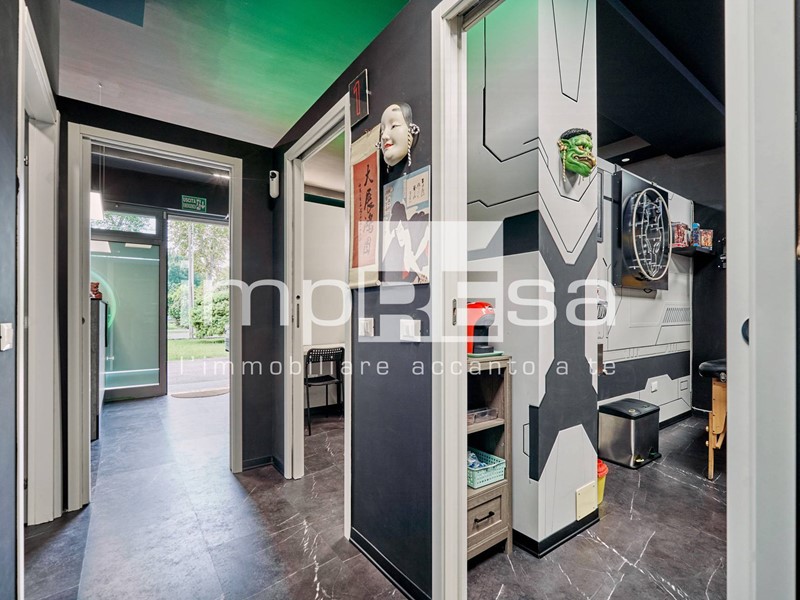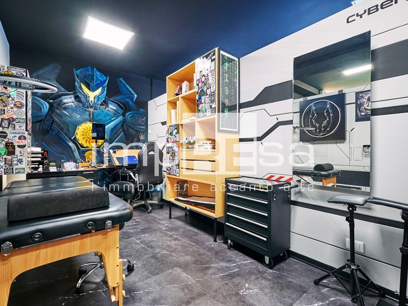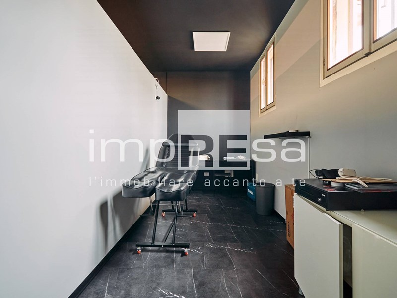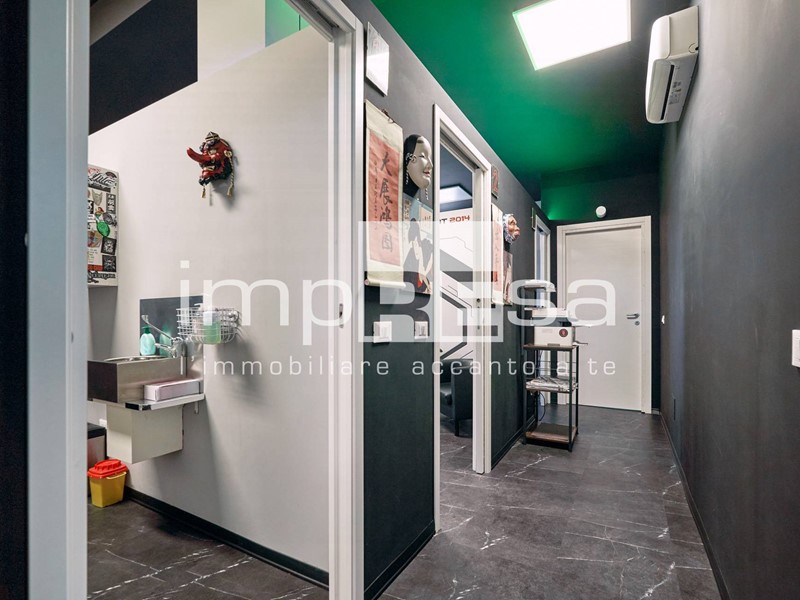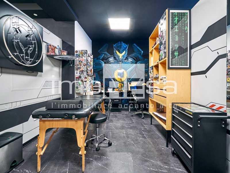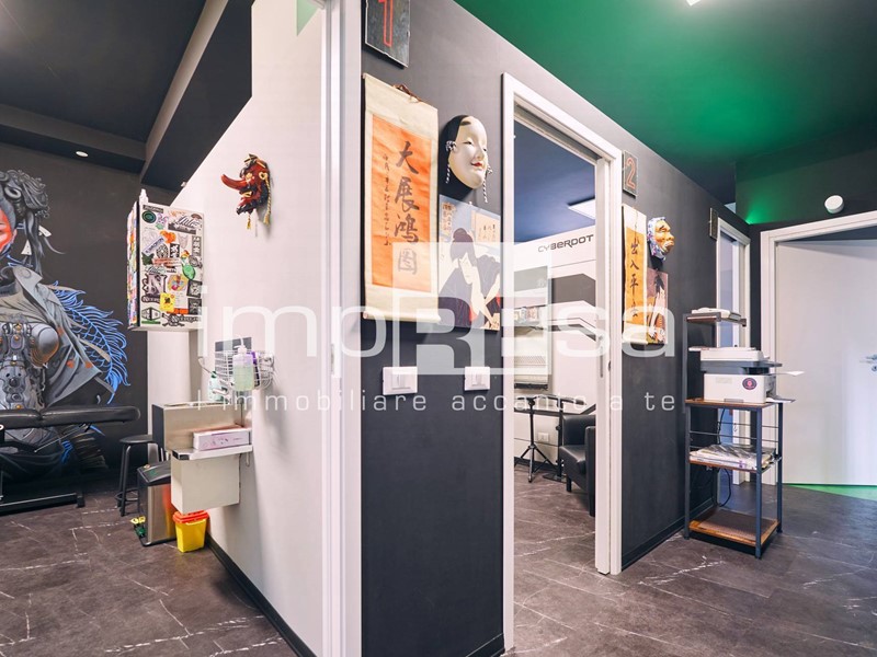 Il negozio si sviluppa nel seguente modo: l' ingresso dà su una comoda reception per l' accoglienza degli ospiti, tre sale operative ricavate con pareti in cartongesso, un bagno con anticamera e una saletta ad uso magazzino per il personale.