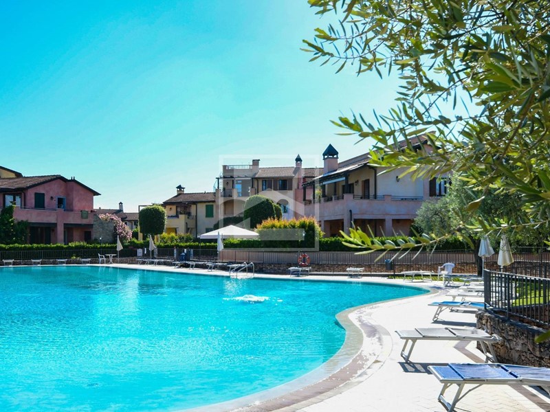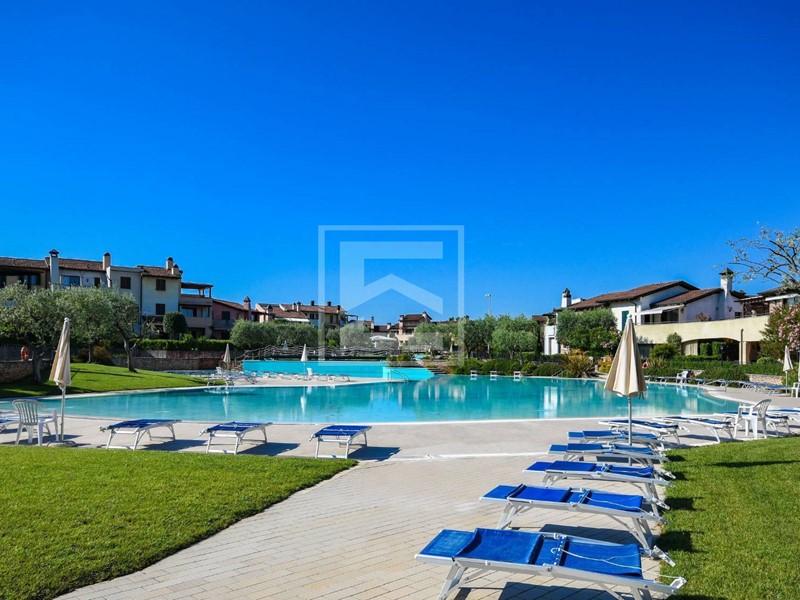 Trilocale finemente arredato nello splendido residence Garda Resort Village con vista tramonto e piscina.