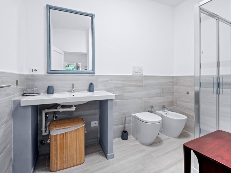 Al piano terra si trova un grazioso monolocale con terrazzo, perfetto come dependance o soluzione per ospiti. Al piano superiore la proprietà si articola in due appartamenti comunicanti: il primo comprende un soggiorno con angolo cottura, due camere da letto, doppi servizi e un giardino privato; il secondo offre due camere, una sala, cucina abitabile, bagno e un terrazzo attrezzato che si affaccia su un piccolo appezzamento di terreno.