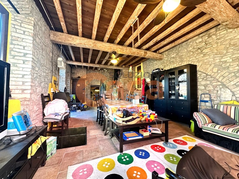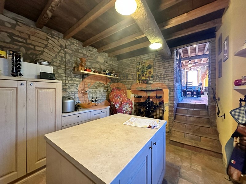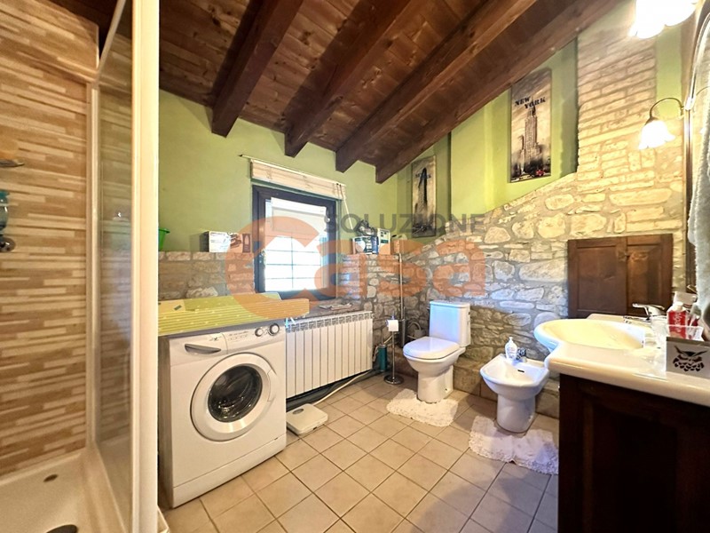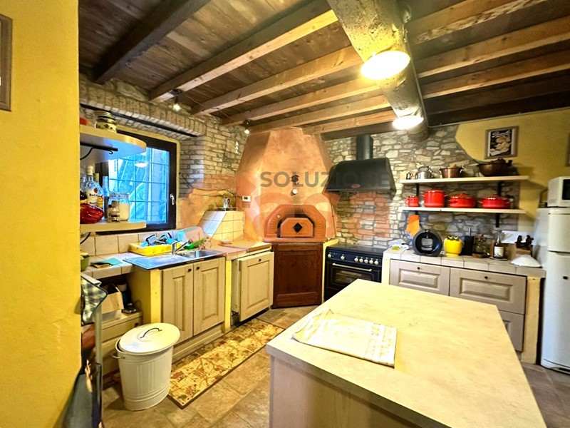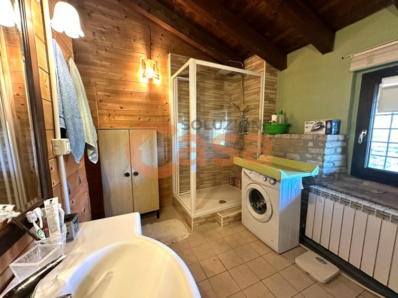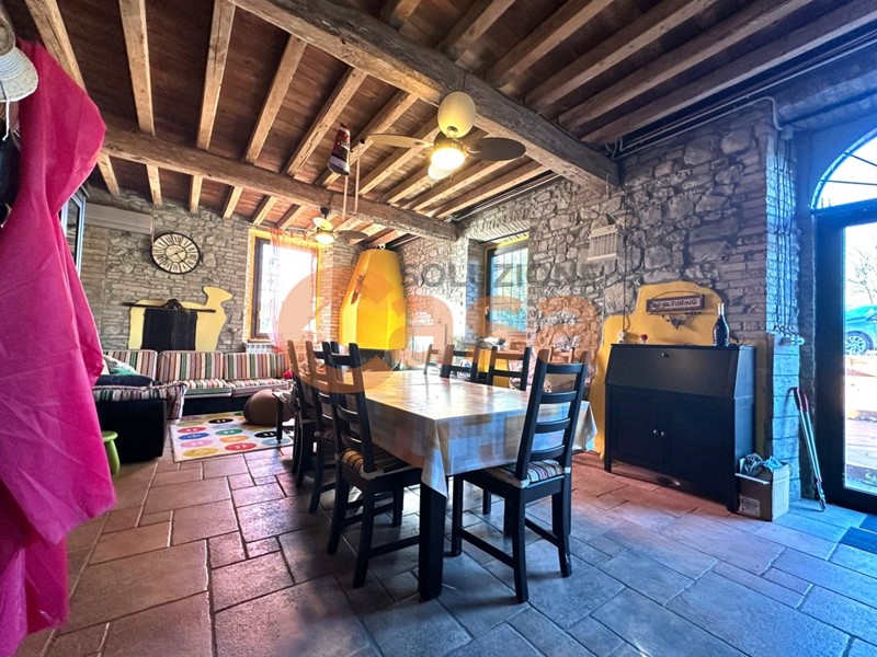 La casa è così composta: ampio soggiorno con camino a legna, cucina abitabile, doppi servizi, 3 camere da letto, fotovoltaico sul tetto e circa 15.000,00 mq di terreno adiacente all'immobile.