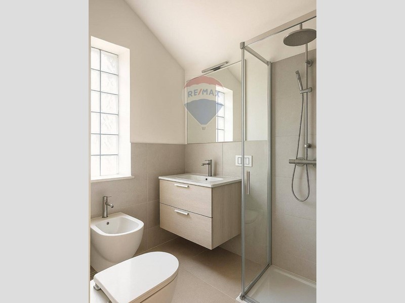 Unico locale con 4 ampi lucernari apribili su tetto e una finestra attualmente chiusa con mattoni vetro. (Su qualche lucernario è possibile creare un balconcino).