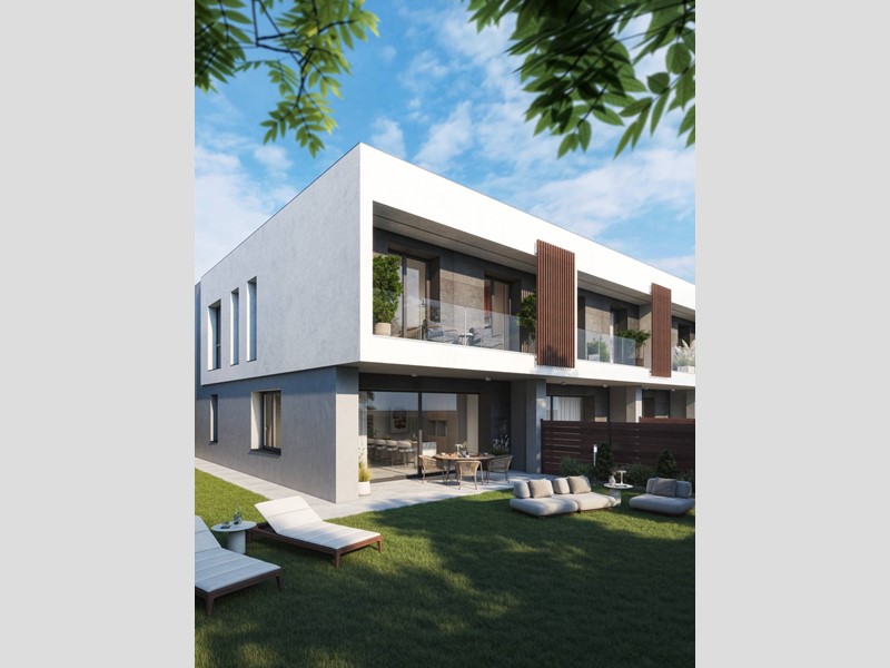 VILLA A SCHIERA DI NUOVA COSTRUZIONE CON GIARDINO E BALCONE Composto da un insieme di sette ville caratterizzate da spazi moderni e funzionali, il progetto si integra armoniosamente tra architettura e natura. La struttura si distingue per le grandi vetrate che permettono alla luce naturale di abbracciare gli interni, creando unatmosfera intima e accogliente. Unesperienza residenziale che coniuga stile e comfort in modo unico, senza trascurare l'importanza del risparmio energetico e dell'attenzione alla sostenibilità ambientale. La bellezza incontra la funzionalità, ciascun layout, presenta spazi generosi, tutto è progettato per garantire la massima funzionalità e comfort. Gli interni si fondono armoniosamente con il giardino privato e i balconi, creando una continuità tra spazi interni ed esterni. Il giardino diventa un rifugio di tranquillità dove la natura diventa parte dell'architettura, offrendo ai proprietari un luogo per rigenerarsi e godere della bellezza in ogni stagione. Caratteristiche: Il cuore pulsante è un innovativo impianto radiante a pavimento, che distribuisce il calore in modo uniforme, offrendo un'esperienza di riscaldamento e raffreddamento ottimale. La pompa di calore per il sistema di climatizzazione garantisce efficienza energetica superiore, riducendo l'impatto ambientale. Inoltre con limpianto fotovoltaico da 6kw e una batteria di accumulo, la tua casa diventa praticamente autosufficiente, generando energia pulita per le tue esigenze quotidiane. Infine i serranti in PCV assicurano un isolamento termico e acustico eccellente, contribuendo a mantenere una temperatura ideale senza sprechi. Le ville sono dotate di videocitofono intelligente BTicino che grazie all'app, semplice ed intuiva, ti permette di avere un controllo totale dell'abitazione, ovunque tu sia. Inoltre potrai gestire sempre tramite App i vari termostati per massimizzare il comfort della tua casa, ottimizzando i consumi energetici con un solo click. Le ville offrono la possibilità di integrare facilmente il sistema di allarme e videosorveglianza scelto, garantendo massima sicurezza e personalizzazione. La domotica completa l'esperienza, offrendo un controllo totale.