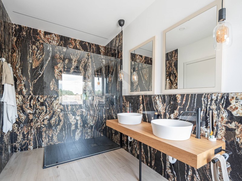 Proseguendo al secondo piano ci sono altre due camere molto spaziose, di cui una con terrazzo, e due bagni, ciascuno con un arredo che vi lascerà senza parole.