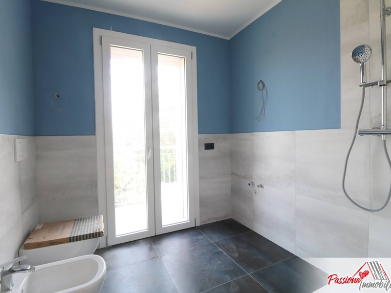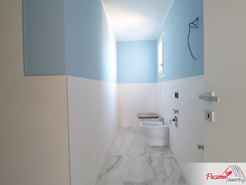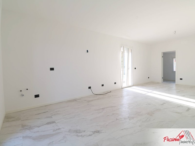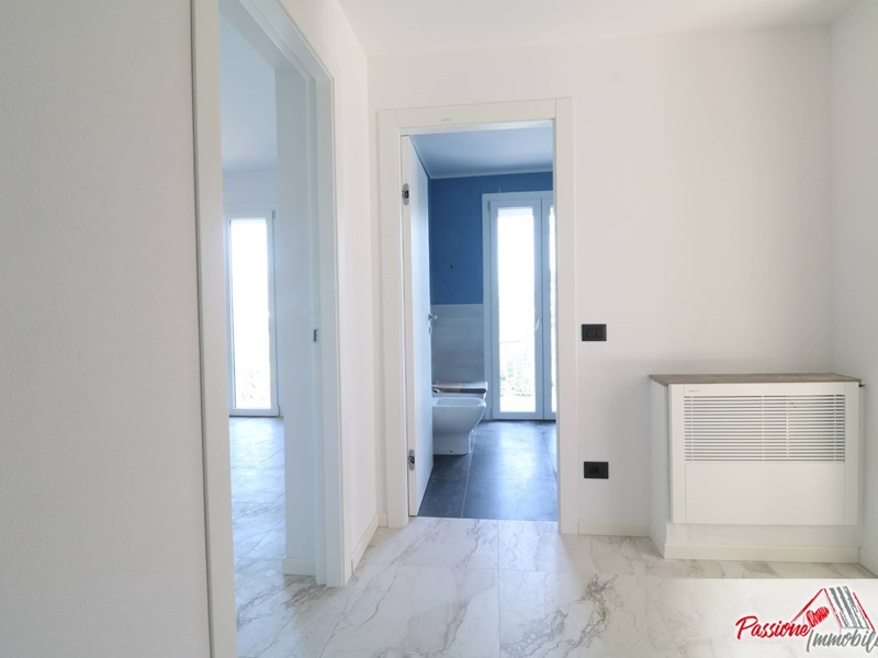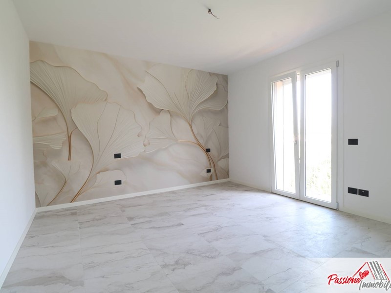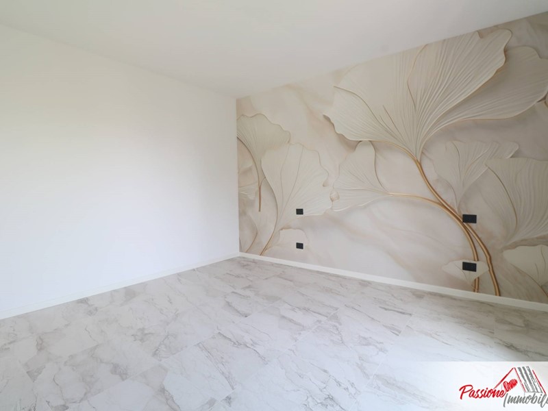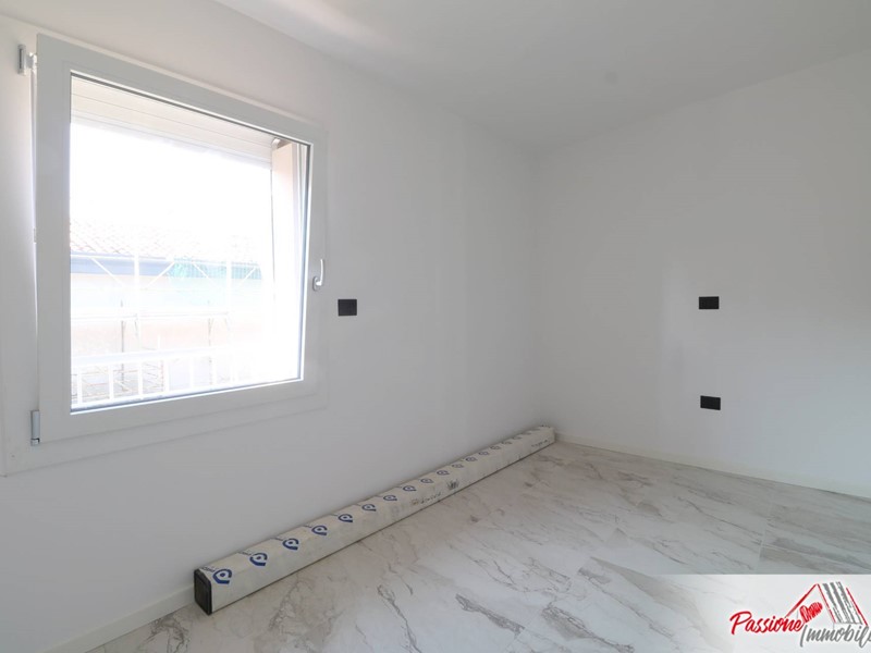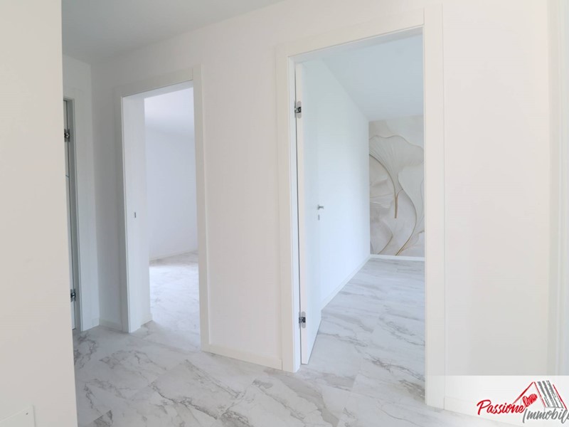 Pavimentazione in ceramica effetto marmo, serramenti interni in PVC con doppio vetrocamera ed esterni avvolgibili in PVC elettrici; riscaldamento, raffrescamento e deumidificazione a pavimento; cappotto esterno da 10 cm ed impianto fotovoltaico da 3.5 KW