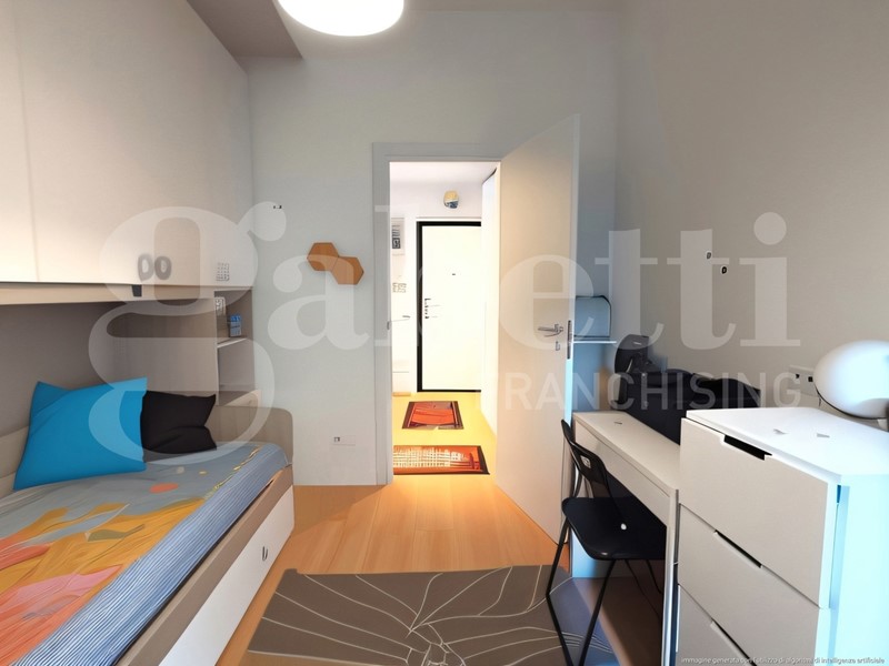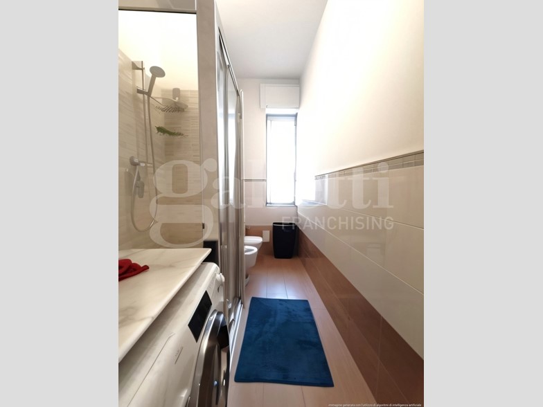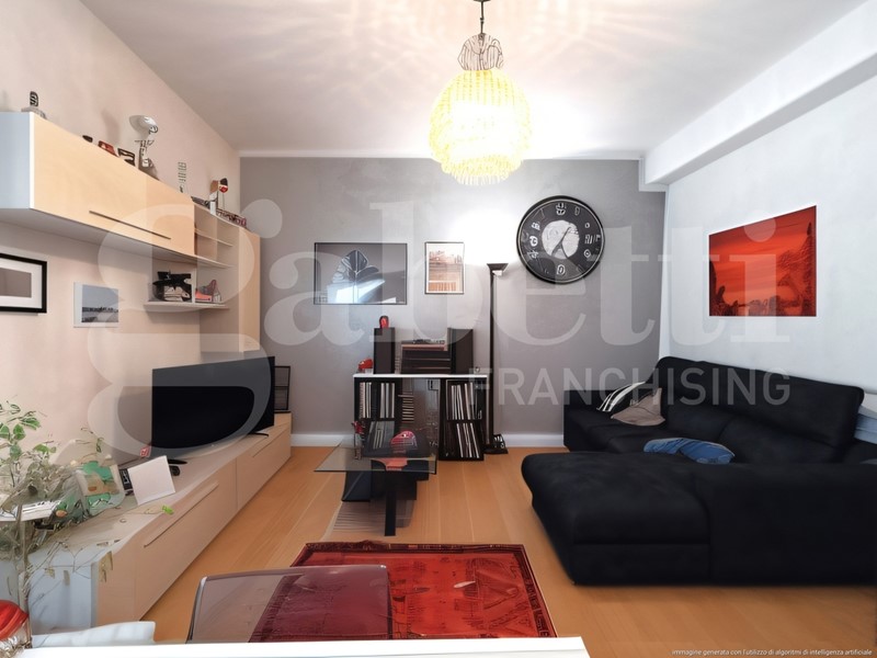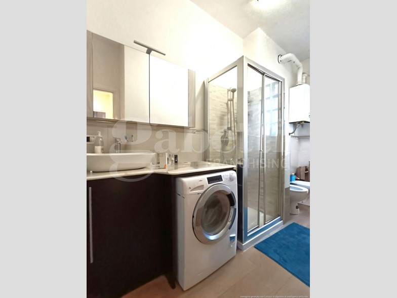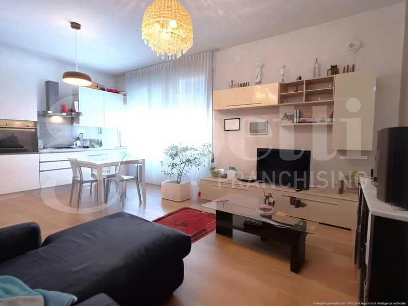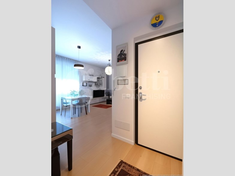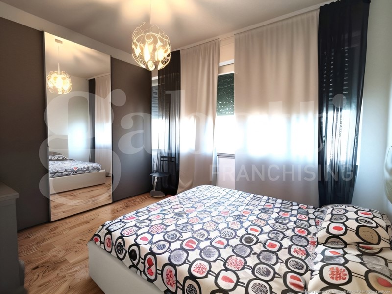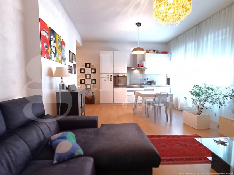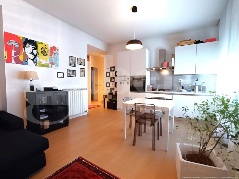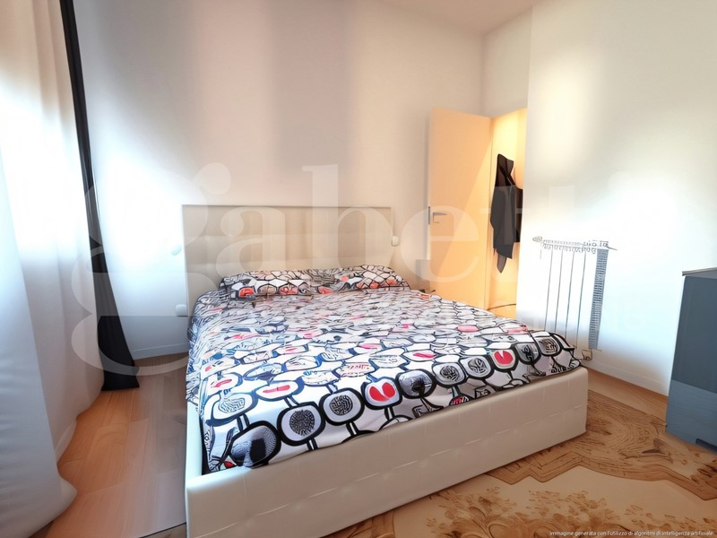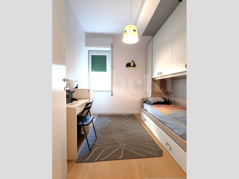 La zona giorno è open-space con cucina a vista e la zona notte si compone di camera matrimoniale, cameretta e bagno finestrato con doccia.