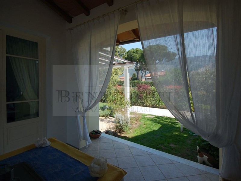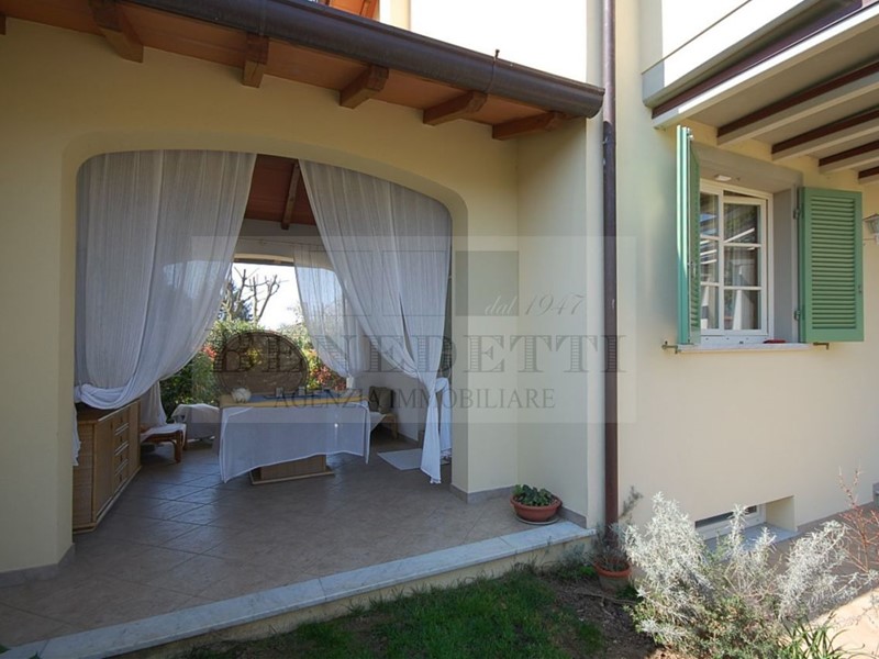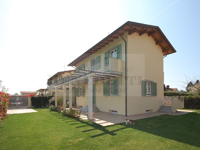 Pietrasanta Prime Adiacenze: Villetta in Bifamiliare di elegante gradevolissima realizzazione, ubicata in signorile e tranquillo contesto in adiacenza al centro città. Unità di attualissimo e curato progetto, studiato per la massima indipendenza funzionale: due livelli primari oltre seminterrato per totale mq 190 ca (9 vani + accessori). Ingresso, soggiorno con affaccio su veranda coperta, cucina abitabile con accesso esterno, tre camere, tripli servizi, oltre balconi, pergolati e giardino carrabile sui 3 lati - Più che buone le condizioni generali per un oggetto di rara reperibilità