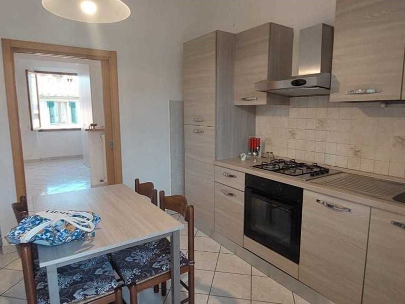 Asciano Vendesi in una traversa del centro storico, appartamento di 75 mq circa in piccolo condominio, ottime condizioni, molto luminoso al piano secondo ed ultimo, composto da: ingresso con ampio soggiorno sala pranzo, cucina abitabile con accesso al terrazzo, camera matrimoniale, camera singola e due bagni di cui uno finestrato. Annesso al piano terra ampio garage con locale tecnico collegato direttamente alla scala interna del palazzo, giardino e resede pavimentata. Pronto per essere abitato. Impianti certificati.