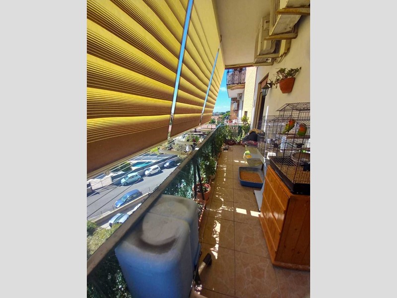 Ad accoglierci, una spaziosa zona giorno open space, con una grande finestra che regala luce naturale durante tutto l’arco della giornata. Il soggiorno si apre su un angolo cottura in muratura, funzionale e ideale per chi ama cucinare e vivere la cucina come cuore della casa. Da qui si accede al balcone vivibile di circa 10 mq, perfetto per momenti di relax o per godere della vista panoramica. Il balcone è dotato di quattro tende da sole, per garantire ombra e privacy durante le giornate più calde. La zona notte è accessibile tramite un disimpegno, con luci di cortesia automatiche, che ospita anche un comodo soppalco , perfetto come spazio aggiuntivo per organizzare la casa al meglio. Le camere da letto sono due: una comoda camera matrimoniale e una cameretta, ideale per bambini, ospiti o come studio. Il bagno, finestrato e anch’esso ristrutturato, è dotato di doccia, zona lavanderia in muratura e di un ulteriore soppalco, ottimo per la gestione della biancheria o come ripostiglio.
